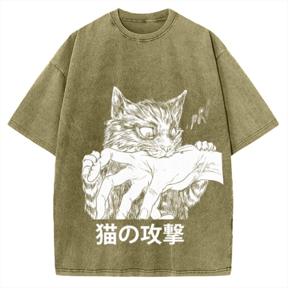 Tokyo-Assassin Cat Attack Vintage Washed T-shirt