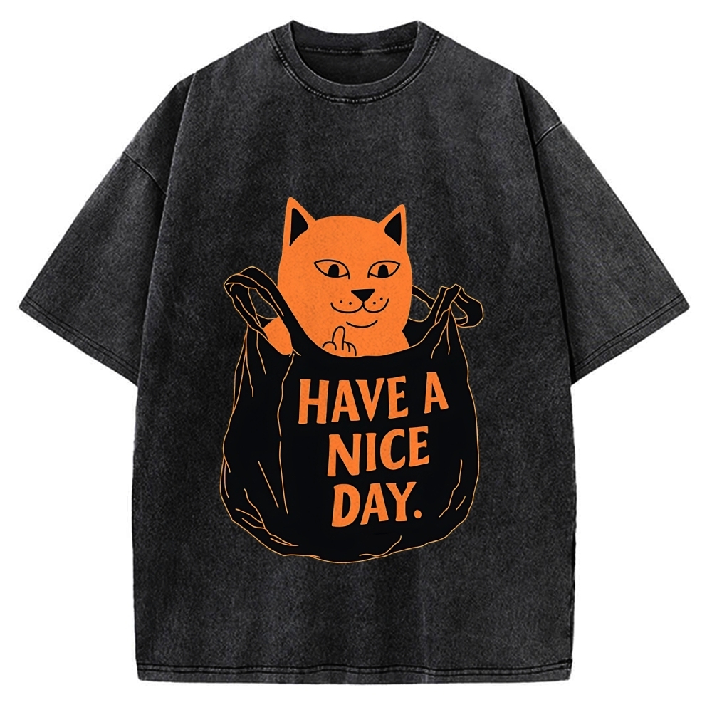 Tokyo-Assassin Cat in my bag have a nice day Vintage Washed T-shirt
