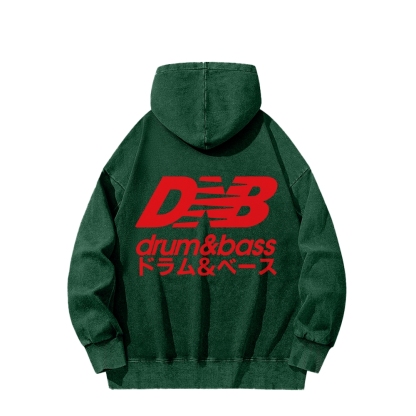Tokyo-Assassin Drum And Bass Vintage Front And Back Printing Washed Hoodie