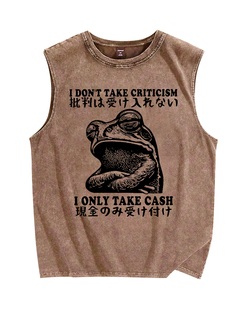 Tokyo-Assassin Frog Only Take Cash Vintage Distressed Washed Tank Top
