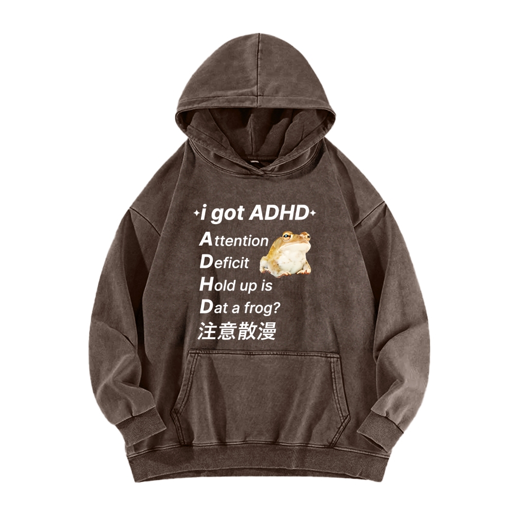 Tokyo-Assassin I Got Adhd Attention Deficit Hold Up Is Dat A Frog Vintage Washed Hoodie