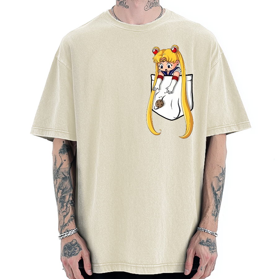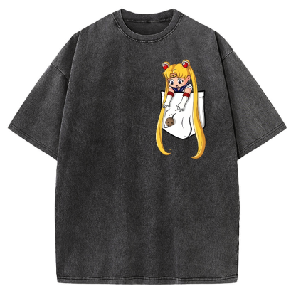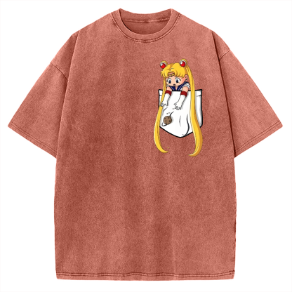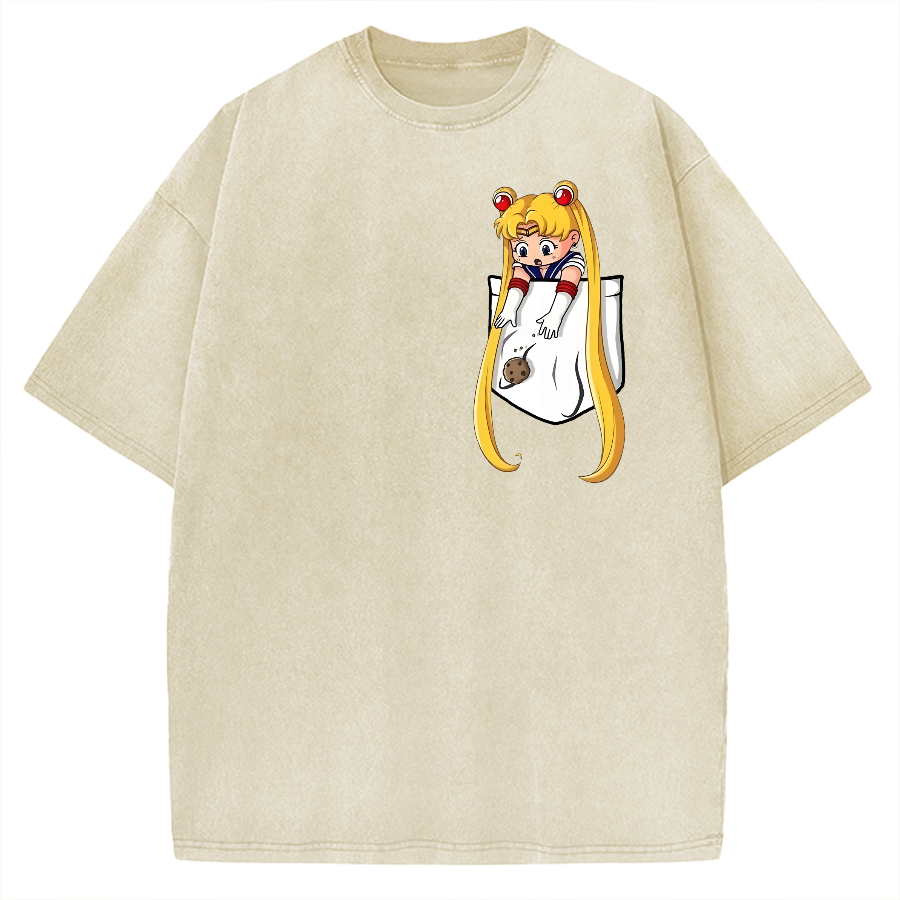 Tokyo-Assassin Japanese girl in pocket Vintage Washed T-shirt