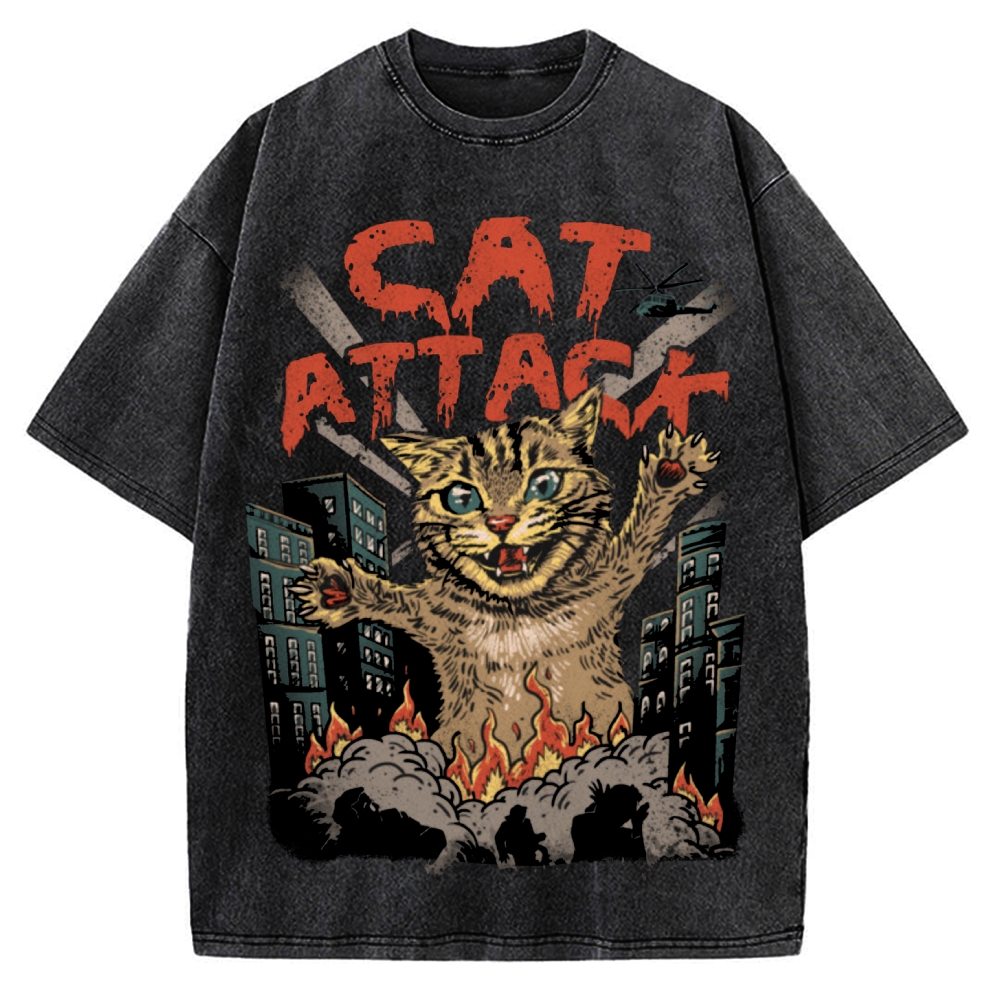 Tokyo-Assassin Monster Cat Attack Vintage Washed T-shirt