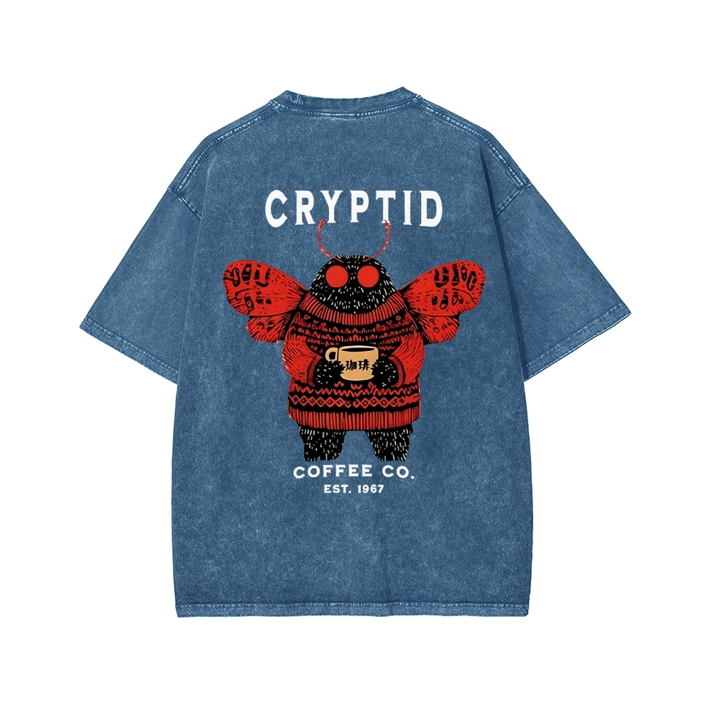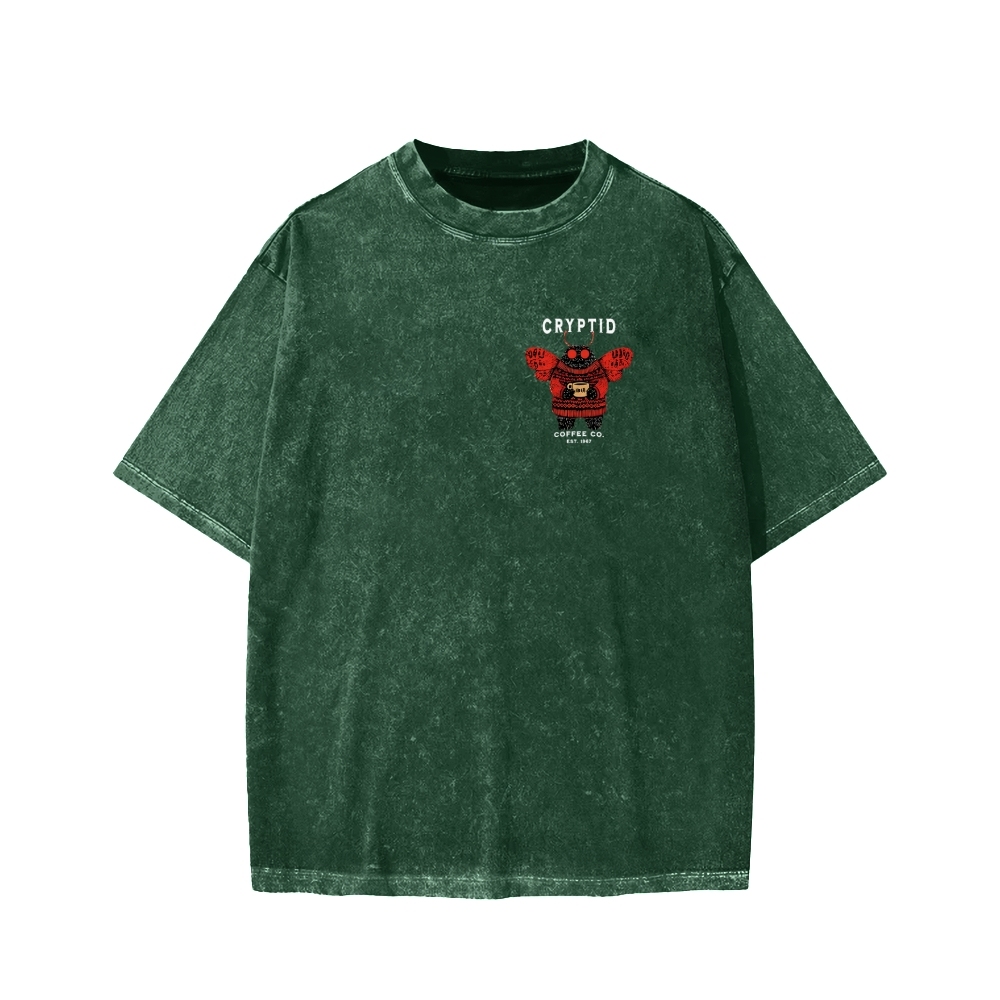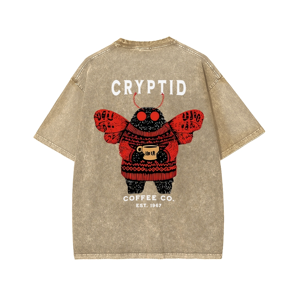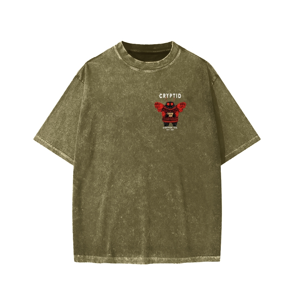 Tokyo-Assassin Mothman Coffee Front And Back Printing Washed T-shirt