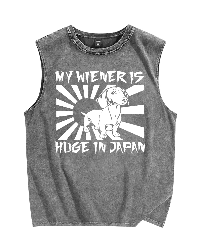 Tokyo-Assassin My Weiner is Huge in Japan Funny Meme Vintage Distressed Washed Tank Top