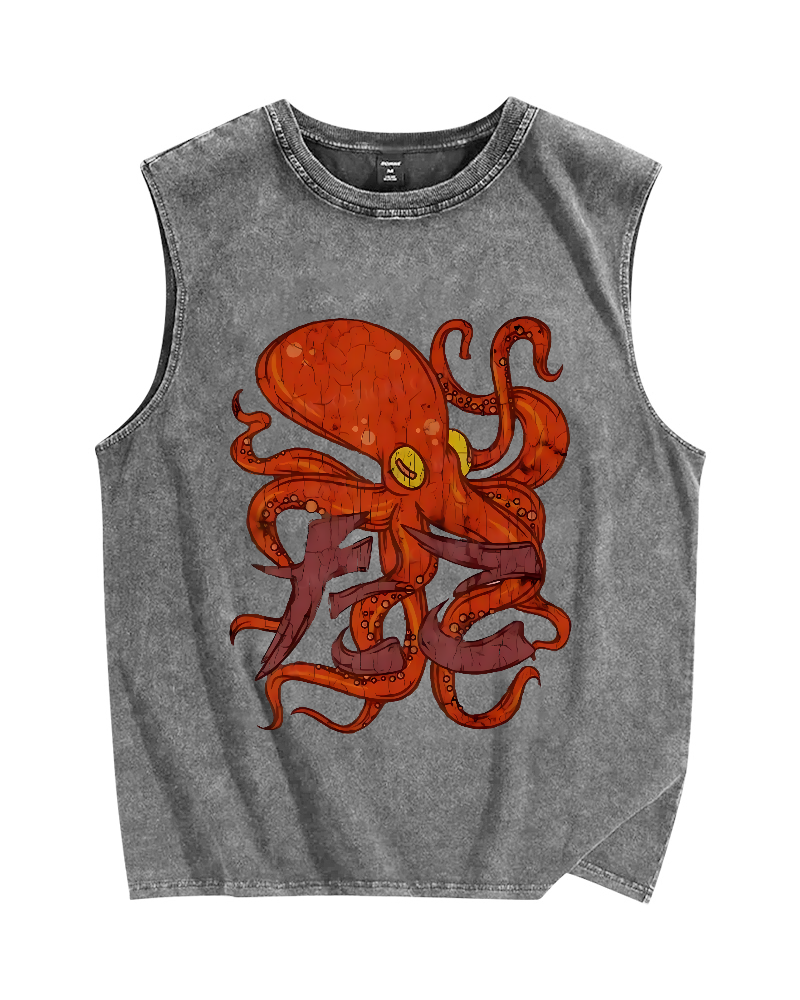 Tokyo-Assassin Red deep sea giant octopus Vintage Distressed Washed Tank Top