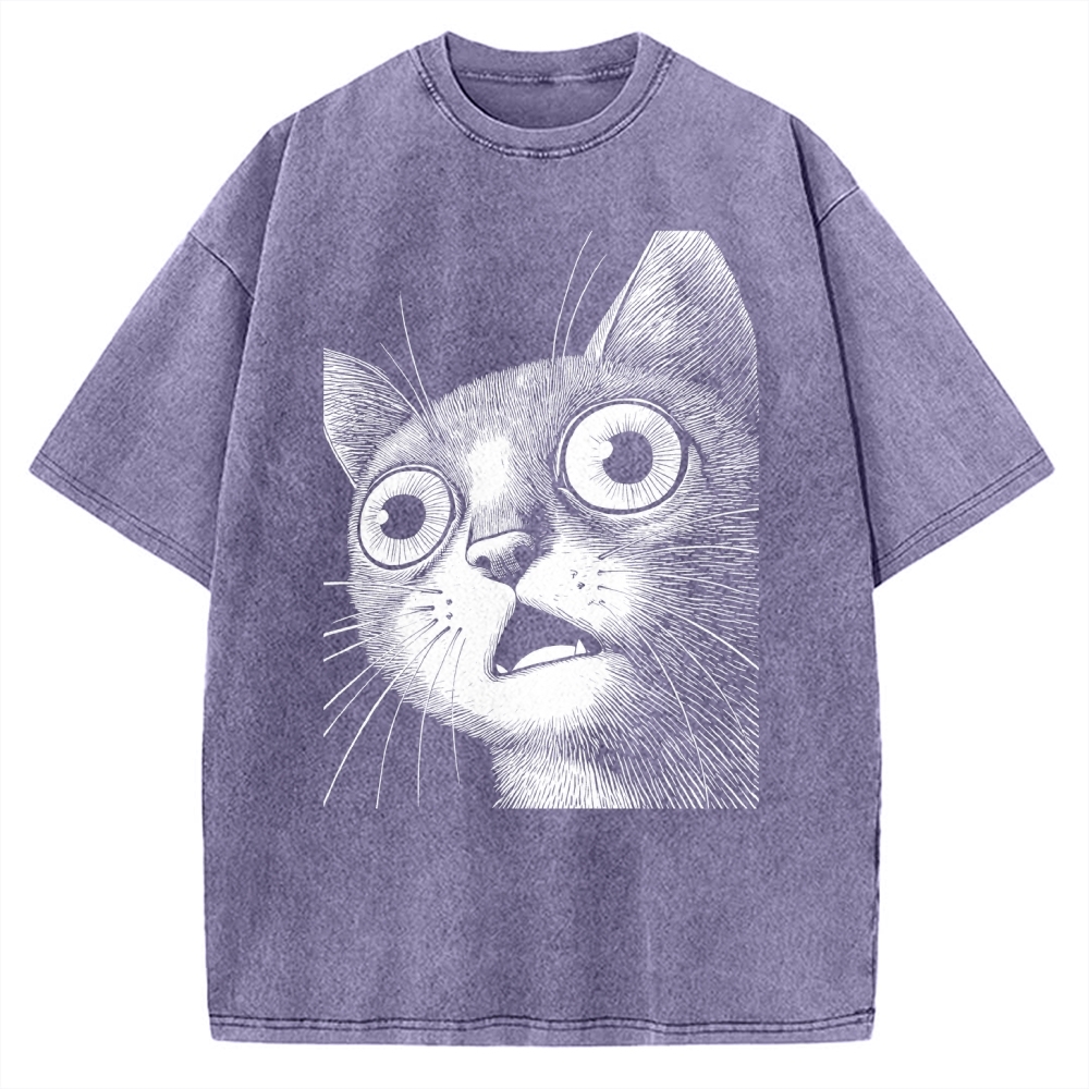 Tokyo-Assassin Surprised cat Vintage Washed T-shirt
