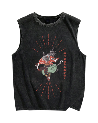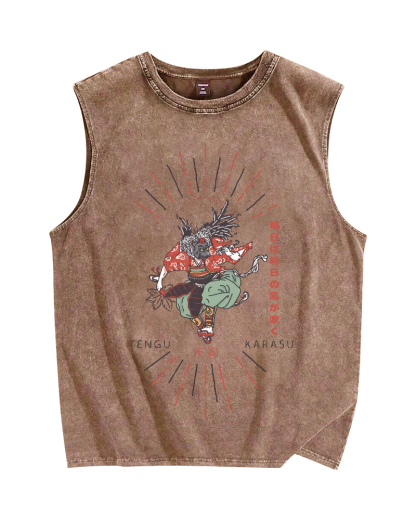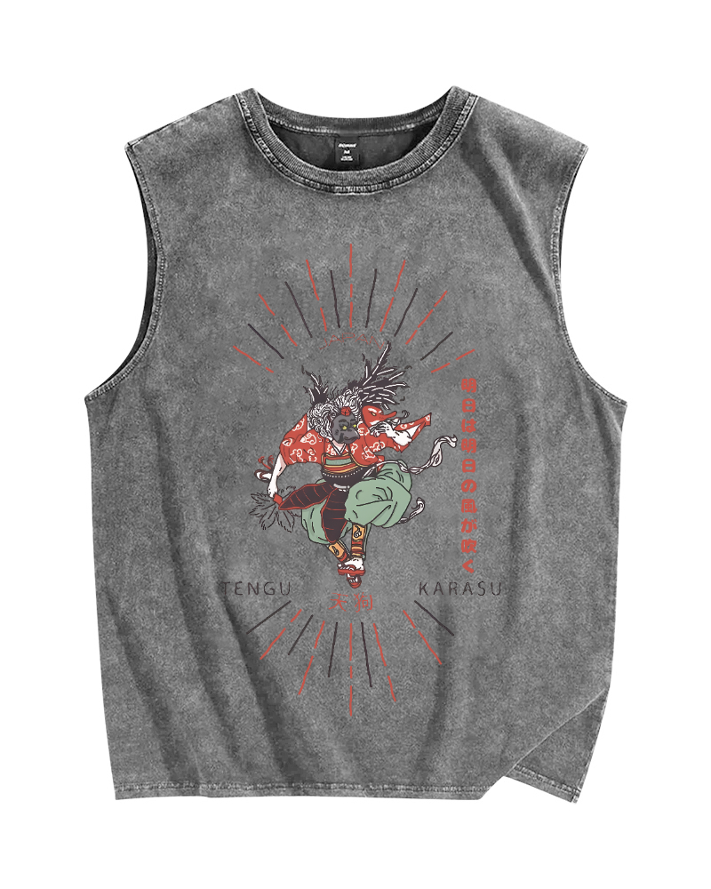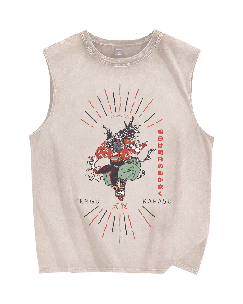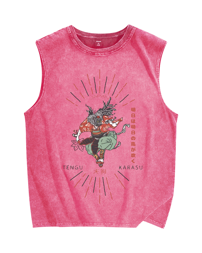 Tokyo-Assassin Tengu Karasu Crow Japanese demon Vintage Distressed Washed Tank Top