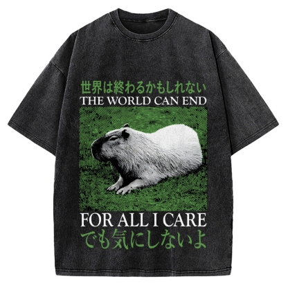 Tokyo-Assassin The World Can End Capybara Vintage Washed T-shirt