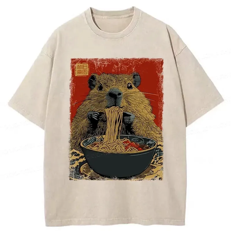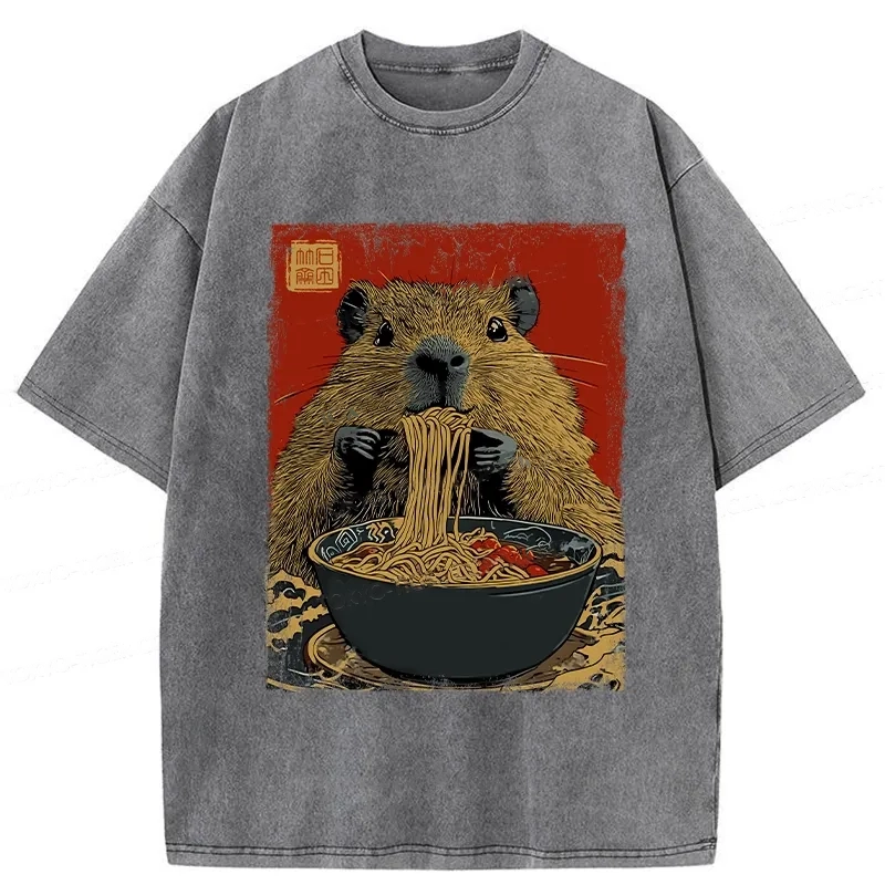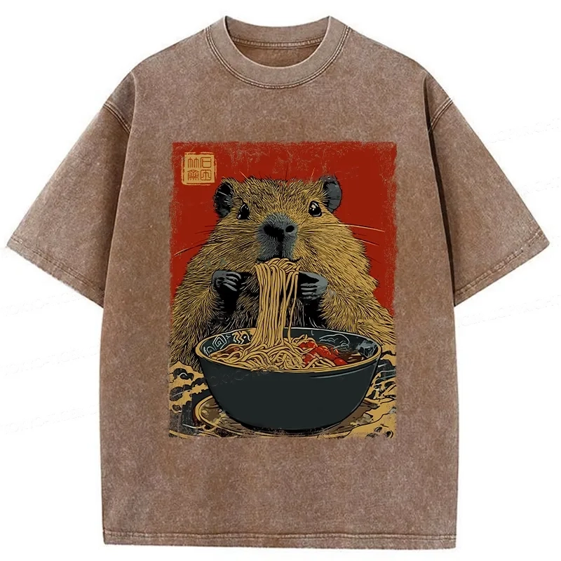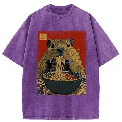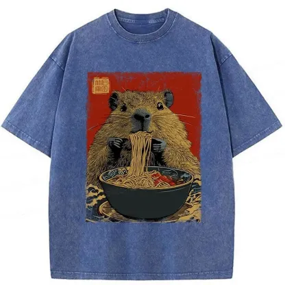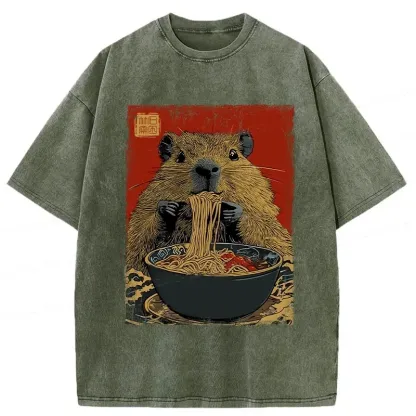 Tokyo-Assassin Capybara Ramen Lover Washed T-Shirt