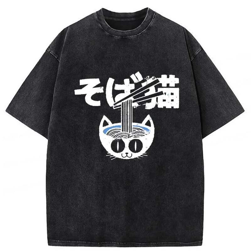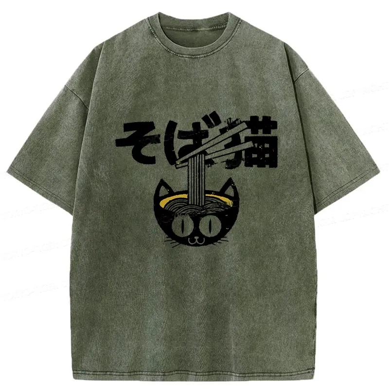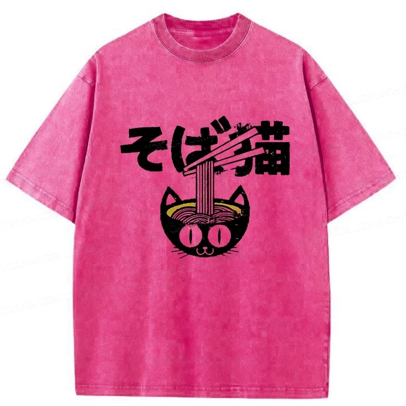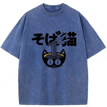 Tokyo-Assassin Cat Ramen Bowl Washed T-Shirt