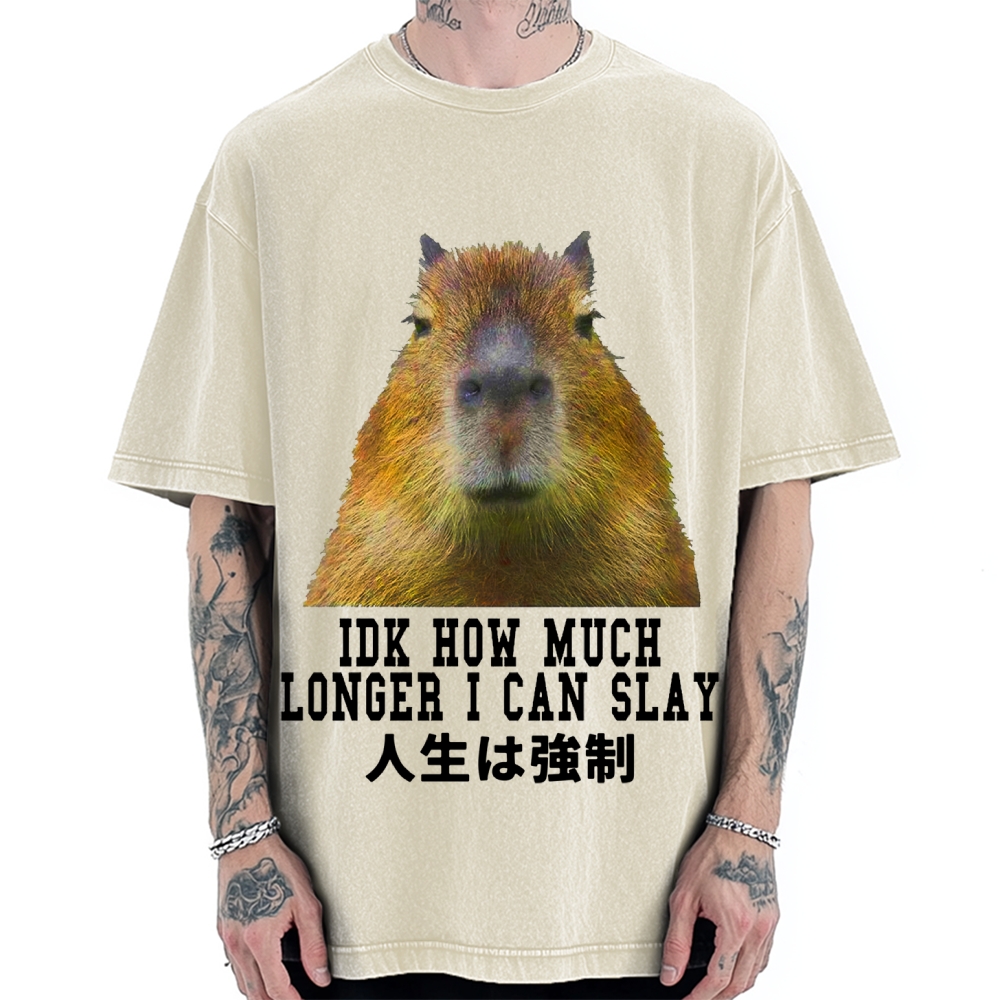 Tokyo-Assassin Capybara Idk how much longer I can slay Vintage Washed T-shirt