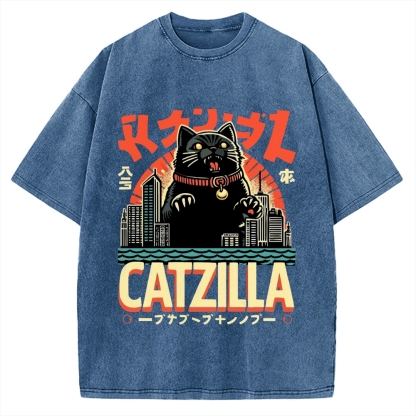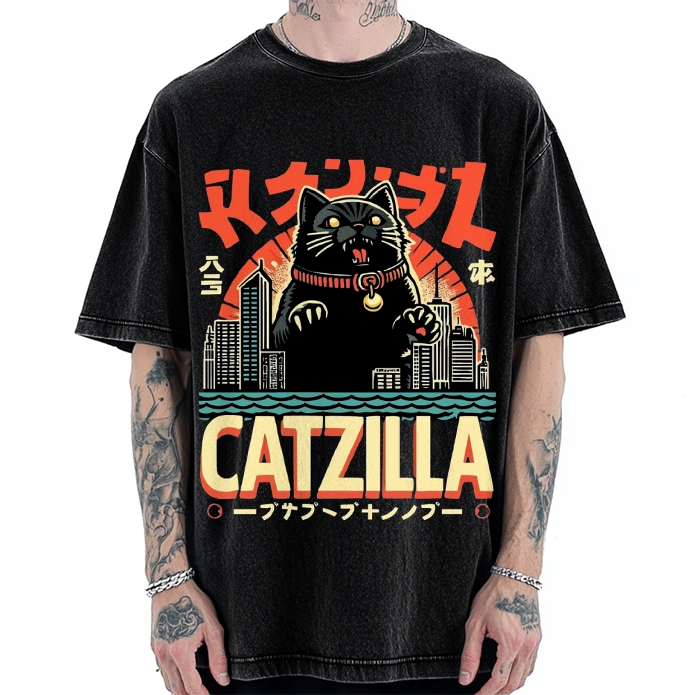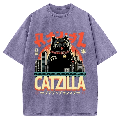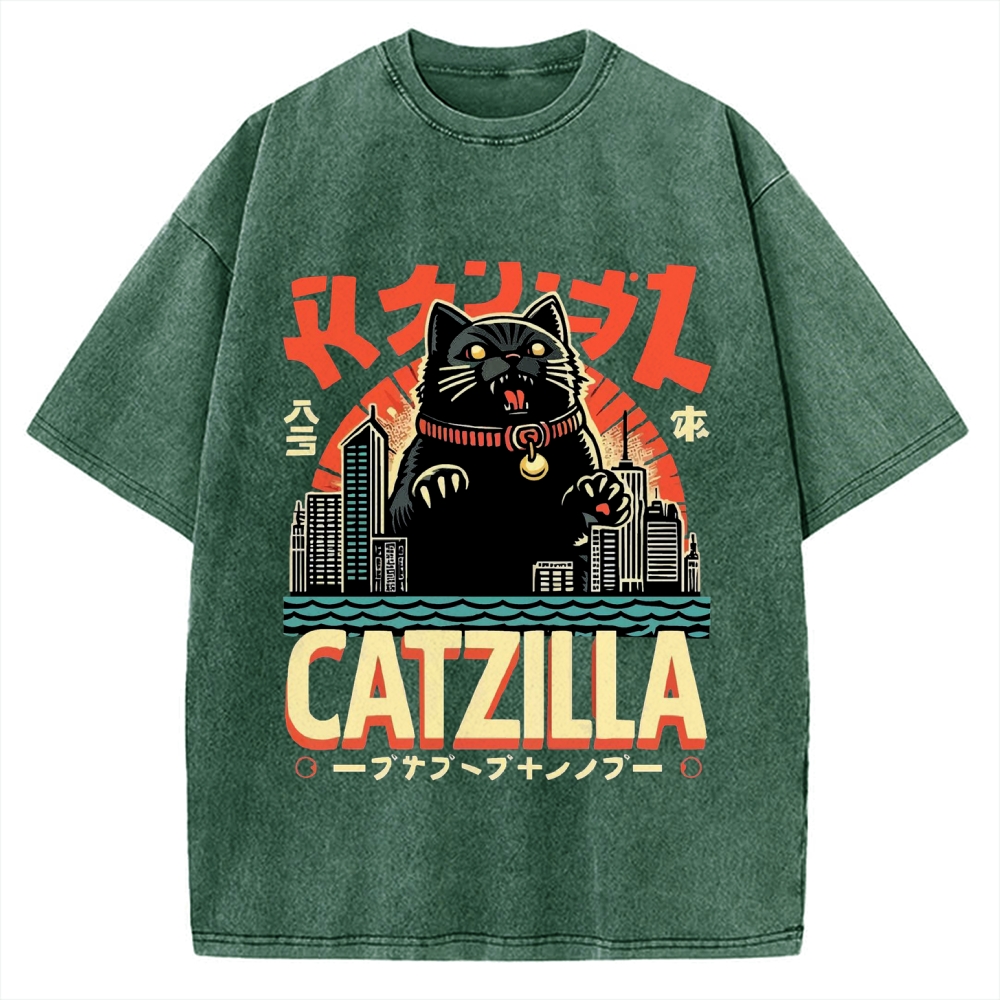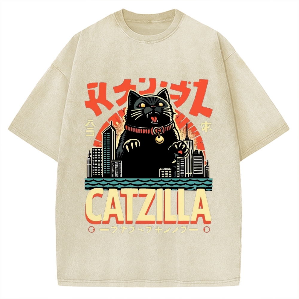 Tokyo-Assassin Monsters Catzilla destroy Tokyo Vintage Washed T-shirt