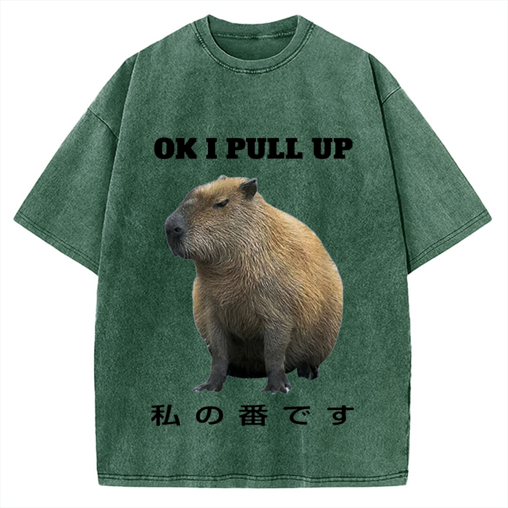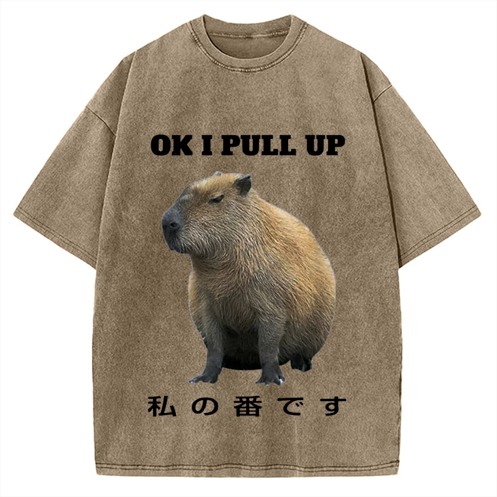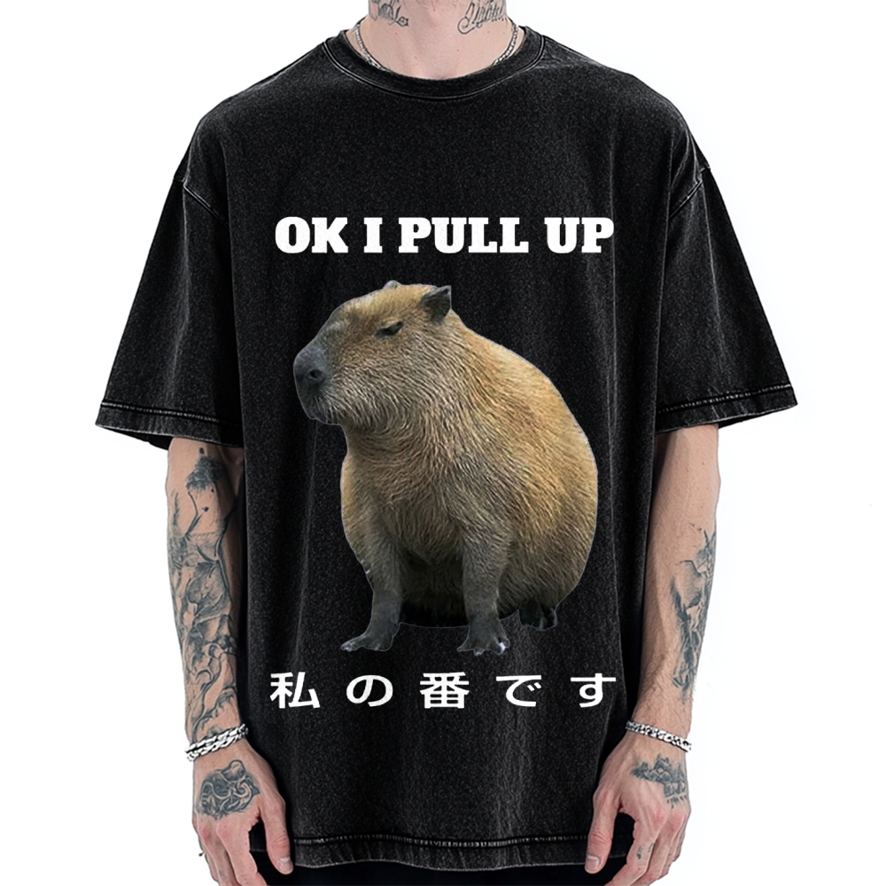 Tokyo-Assassin Ok I Pull Up Capybara Vintage Washed T-shirt