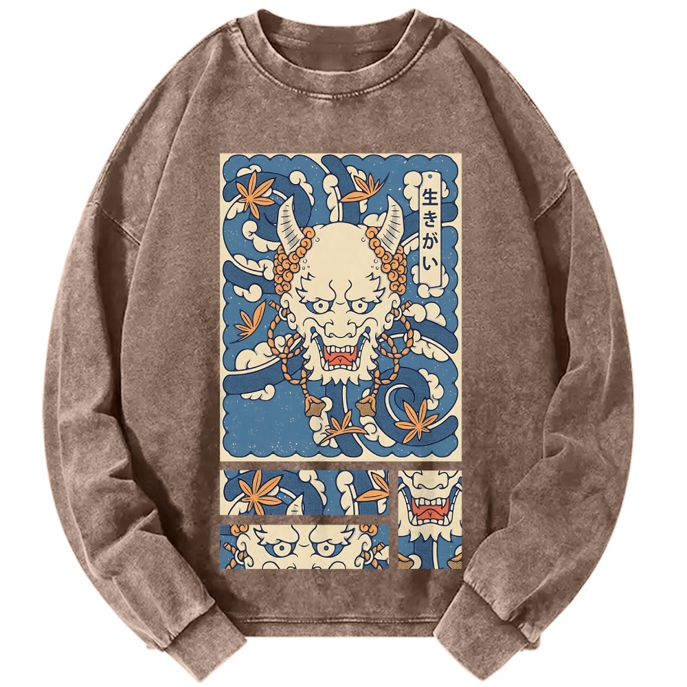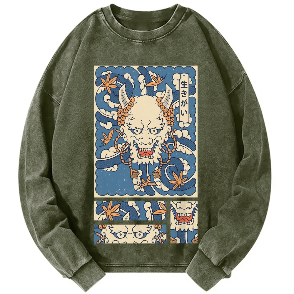 Tokyo-Assassin Purpose in life Dragon Vintage Washed Sweatshirts