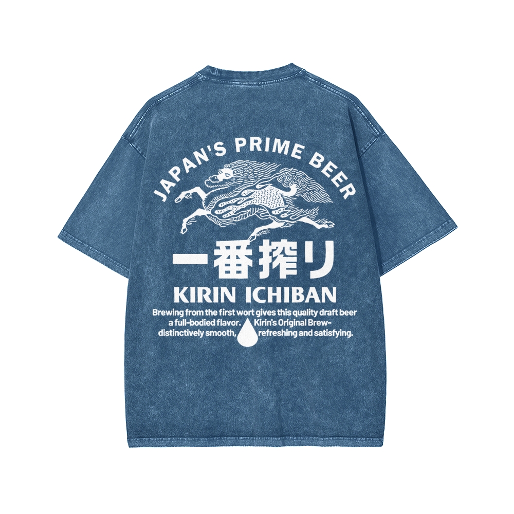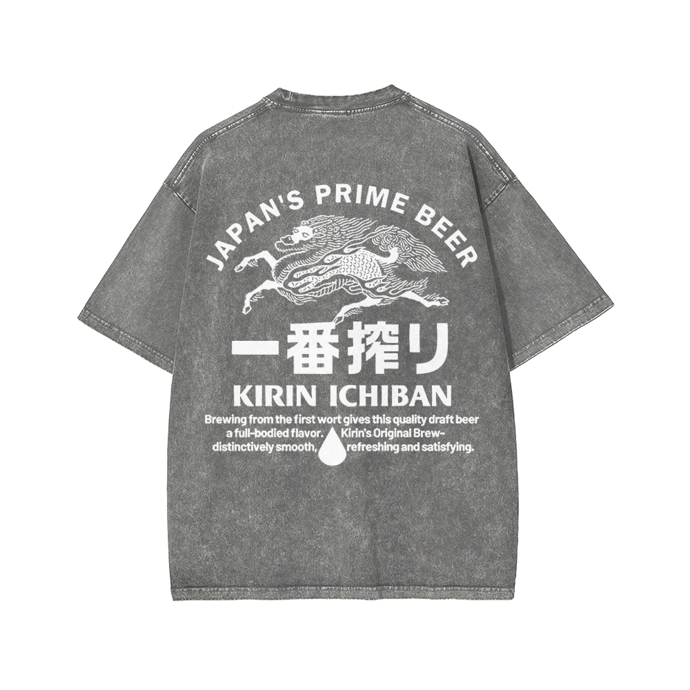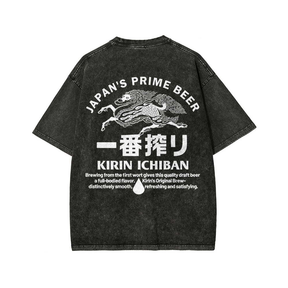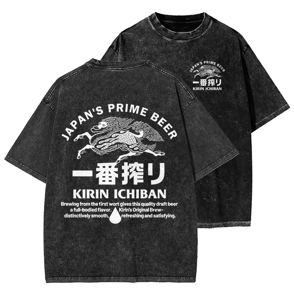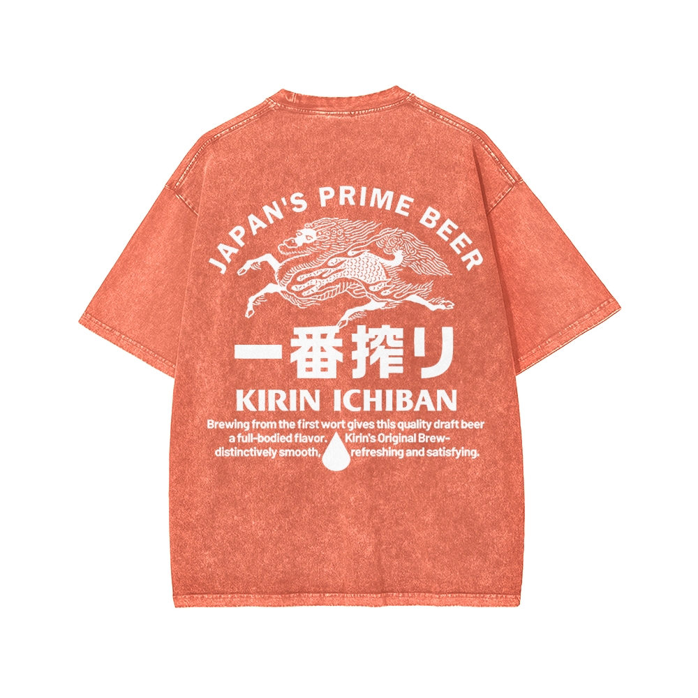 Tokyo-Assassin Ready Stock Japan KIRIN Beer Front And Back Printing Washed T-shirt