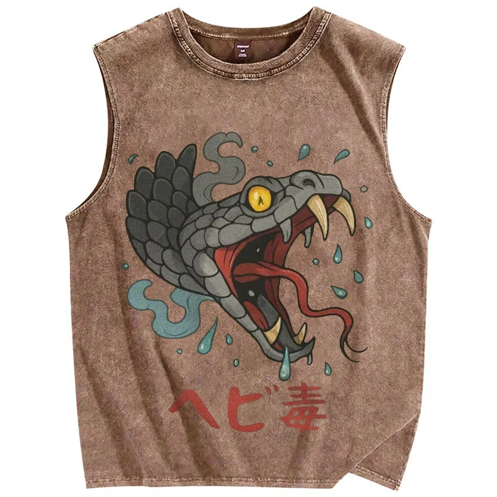 Tokyo-Assassin Snake Venom Japanese Ukiyo-E Vintage Distressed Washed Tank Top