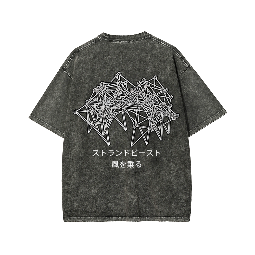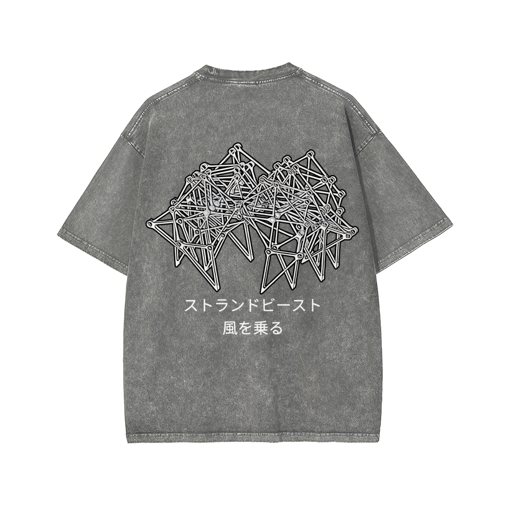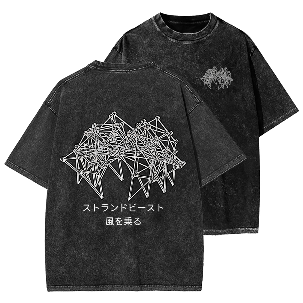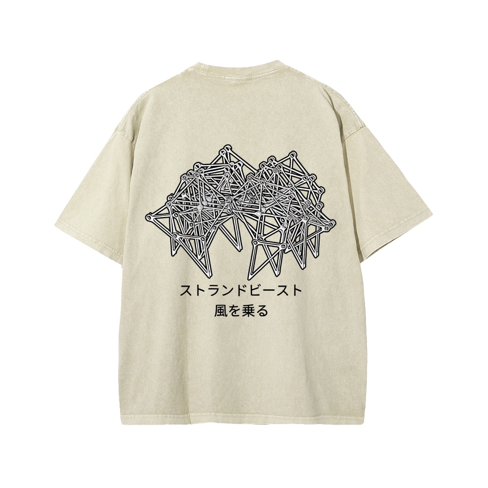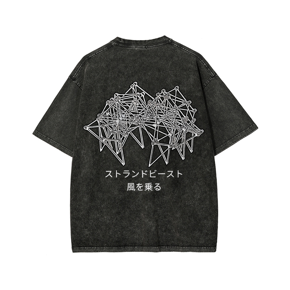 Tokyo-Assassin Bionic Beast Funny Front And Back Printing Washed T-shirt