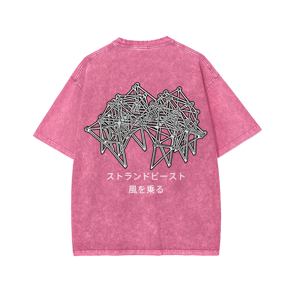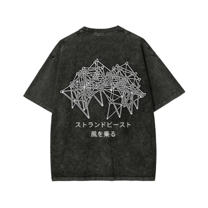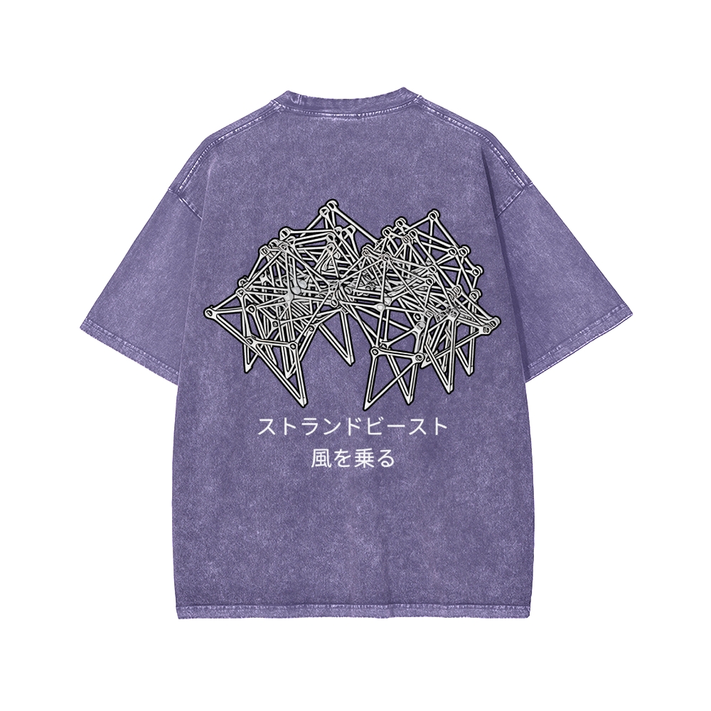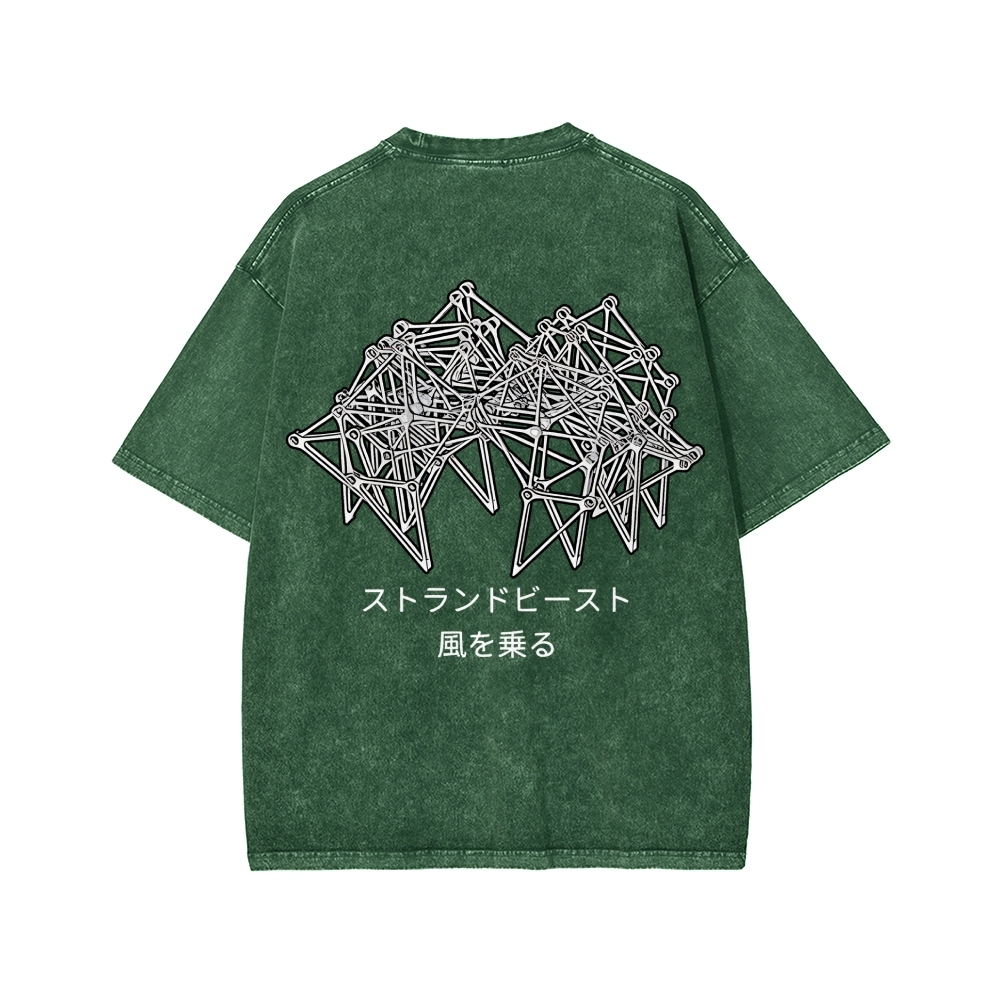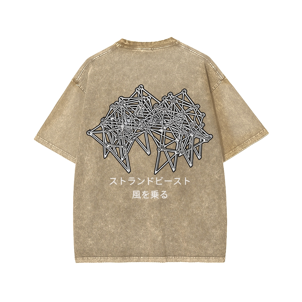 Tokyo-Assassin Bionic Beast Funny Front And Back Printing Washed T-shirt
