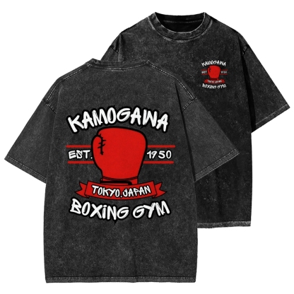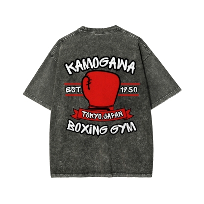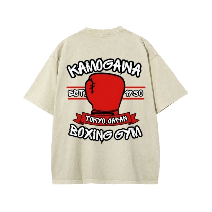 Tokyo-Assassin BOXING GYM Front And Back Printing Washed T-shirt