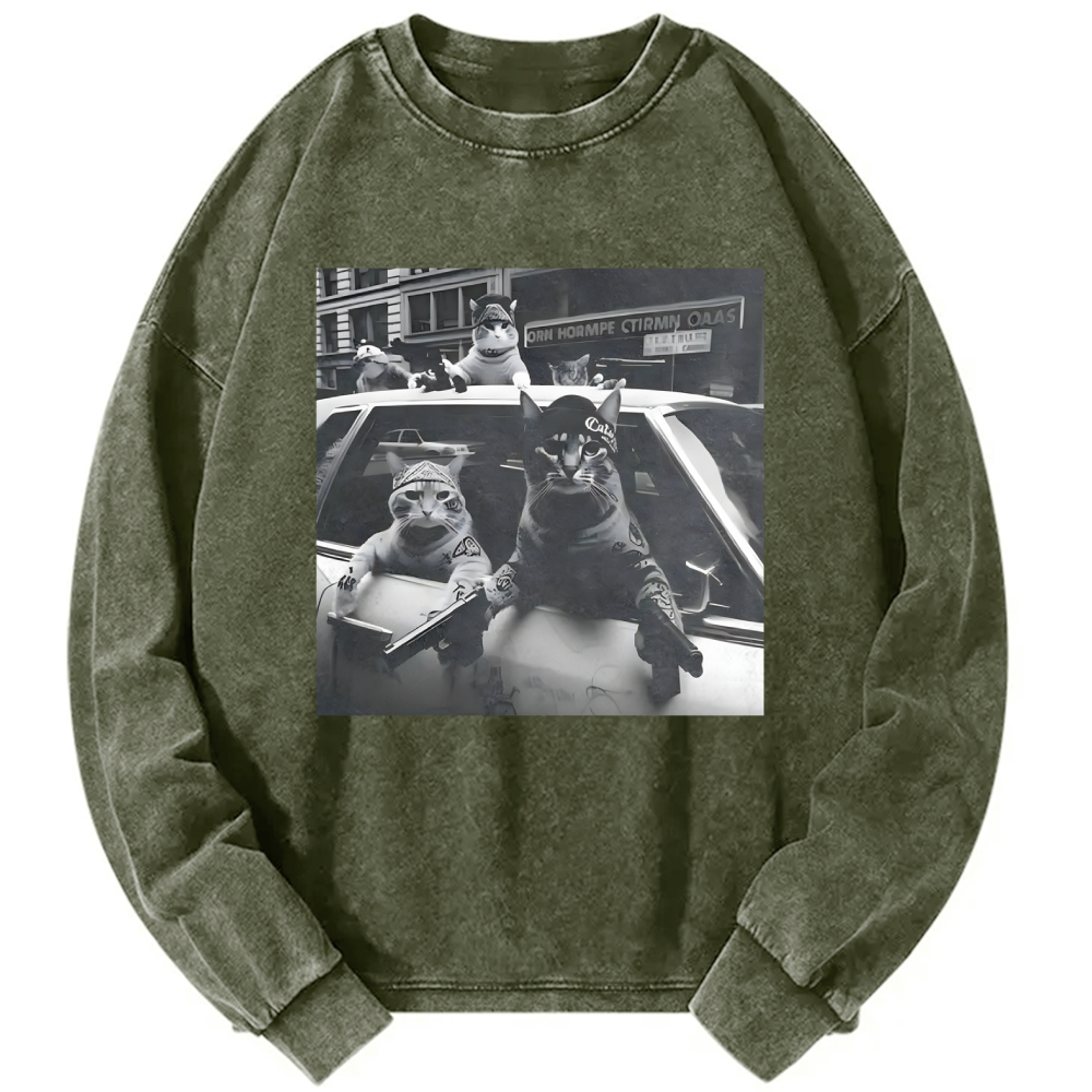 Tokyo-Assassin Funny Cat Gang Vintage Washed Sweatshirts