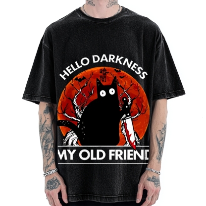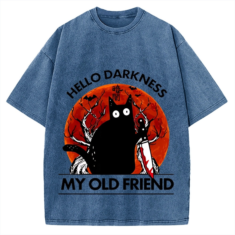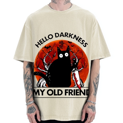 Tokyo-Assassin Hello Darkness My Old Friend Killer Cat Vintage Washed T-shirt