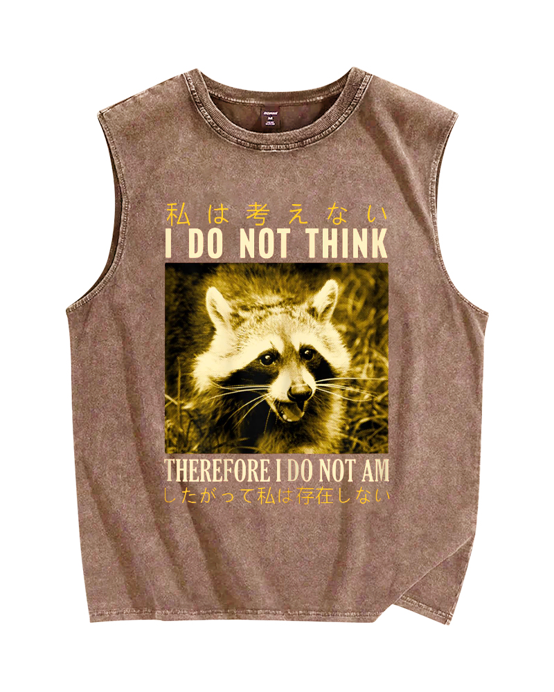 Tokyo-Assassin I don't think therefore i do not am Raccoon Vintage Distressed Washed Tank Top