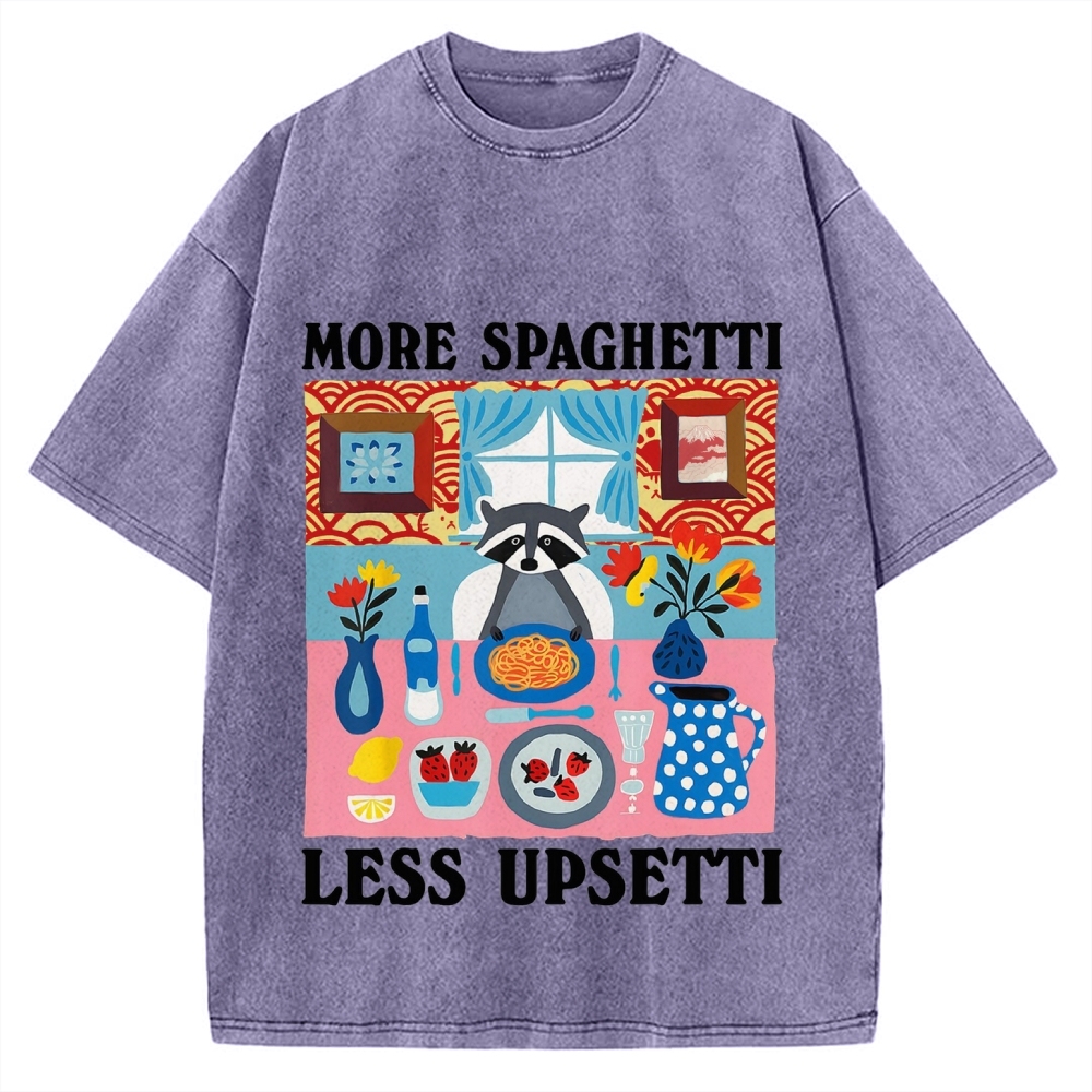 Tokyo-Assassin More Spaghetti Less Upsetti Raccoon Funny Art Vintage Washed T-shirt