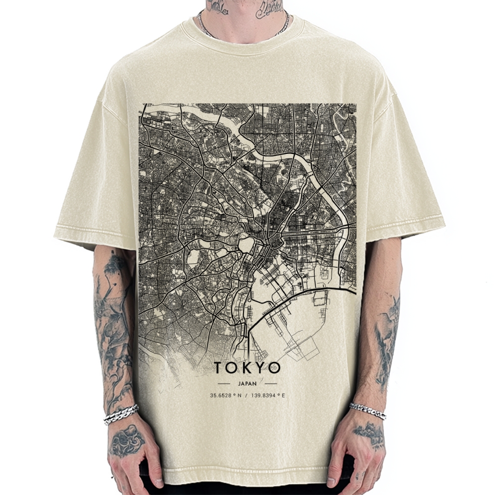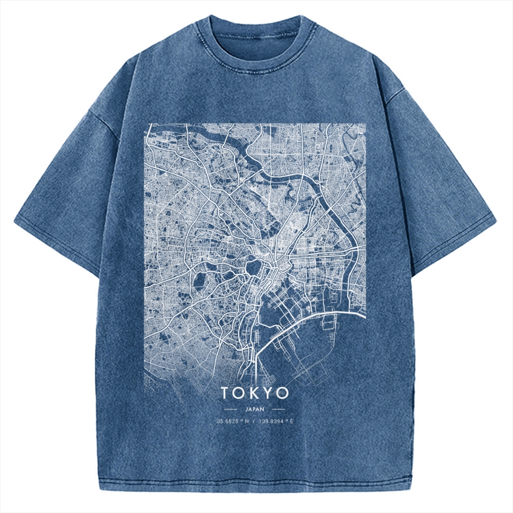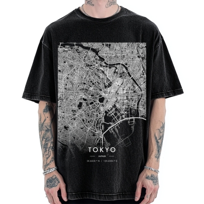 Tokyo-Assassin Tokyo map Vintage Washed T-shirt