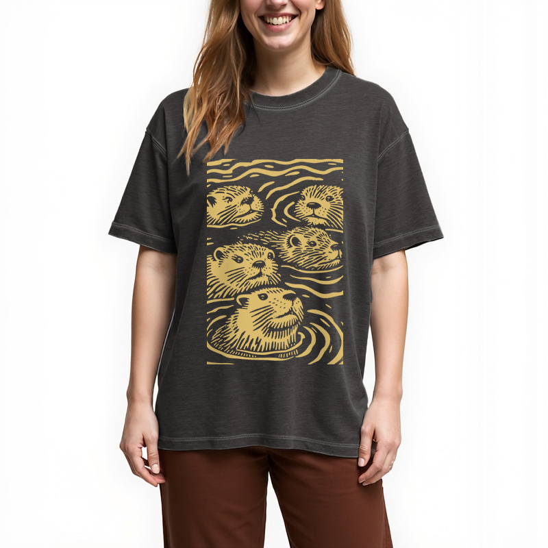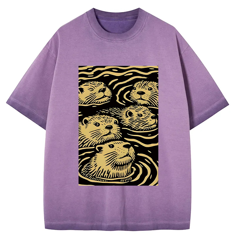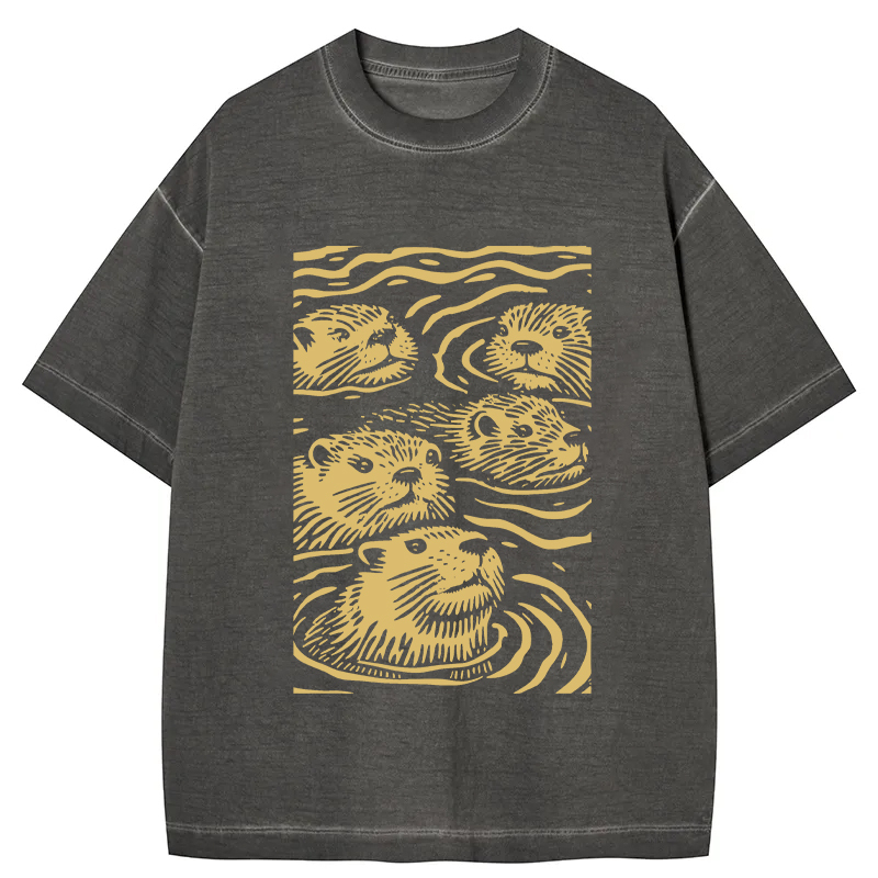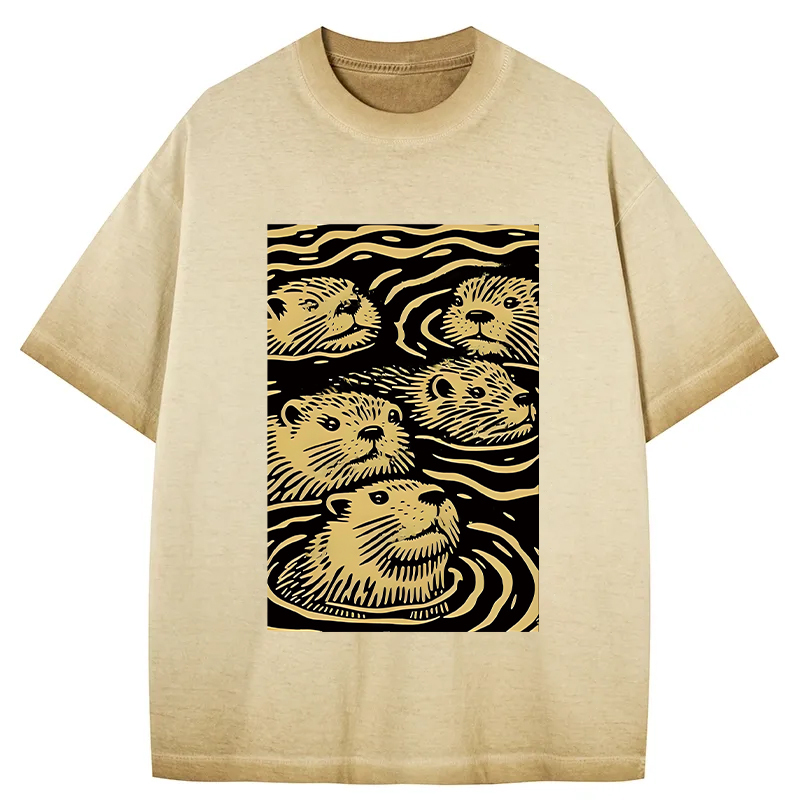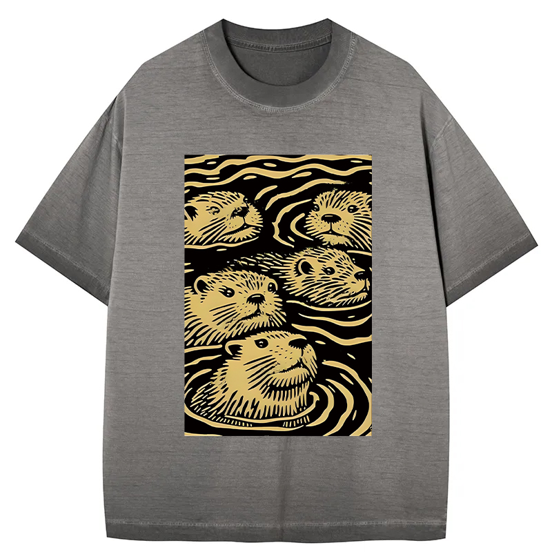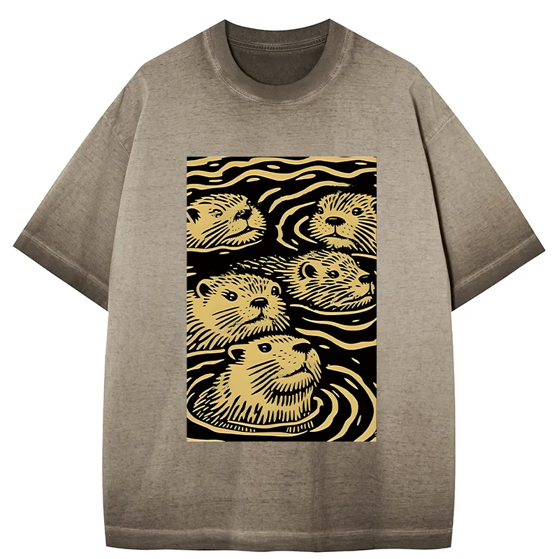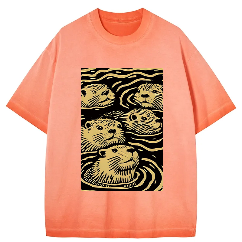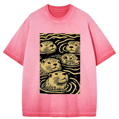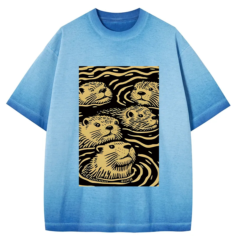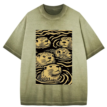 Tokyo-Assassin Woodcut Otter Gradient Washed T-Shirt