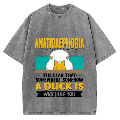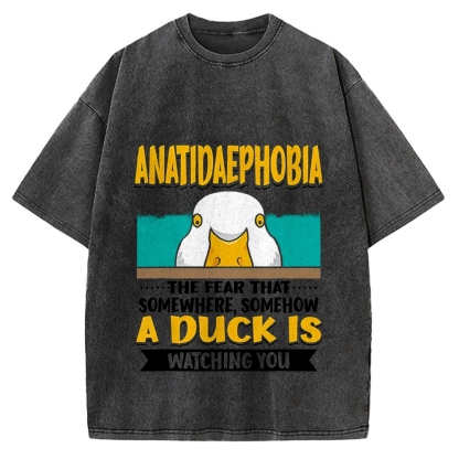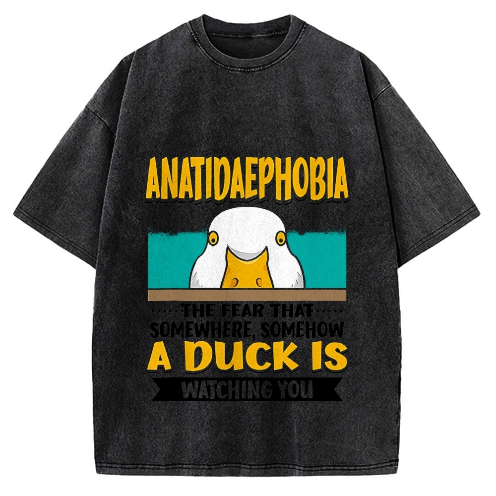 Tokyo-Assassin Anatidaephobia The Fear That A Duck Is Watching You Duck Vintage Washed T-shirt