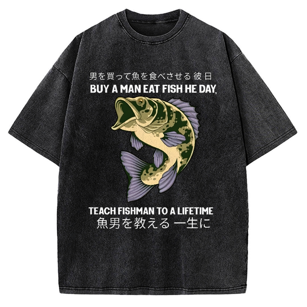 Tokyo-Assassin Buy A Man Eat Fish He Day Teach Fishman To A Lifetime Vintage Washed T-shirt
