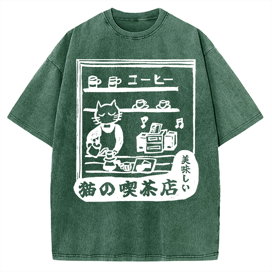 Tokyo-Assassin Cat's Teahouse Vintage Washed T-shirt