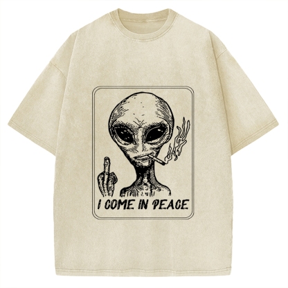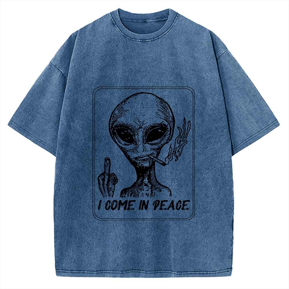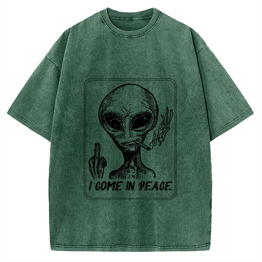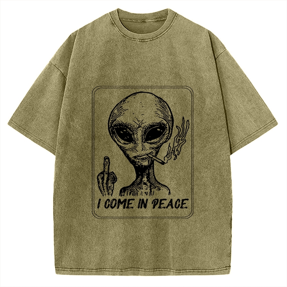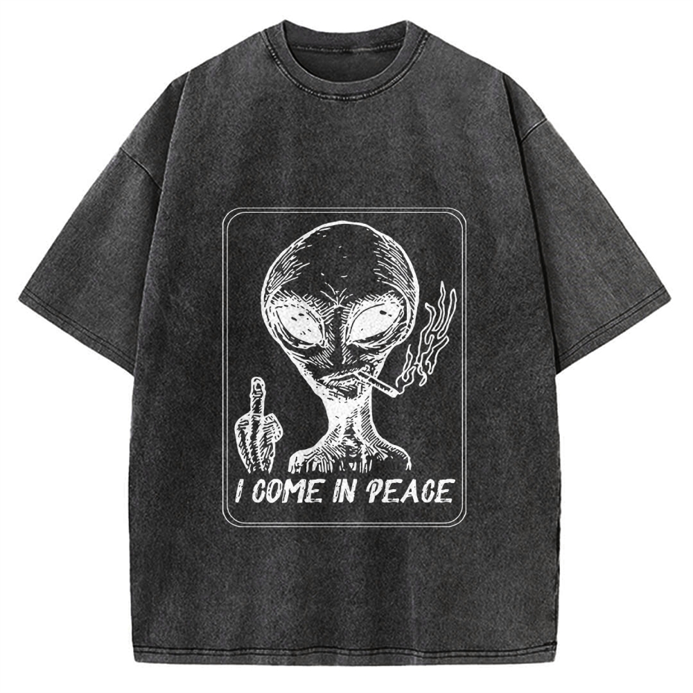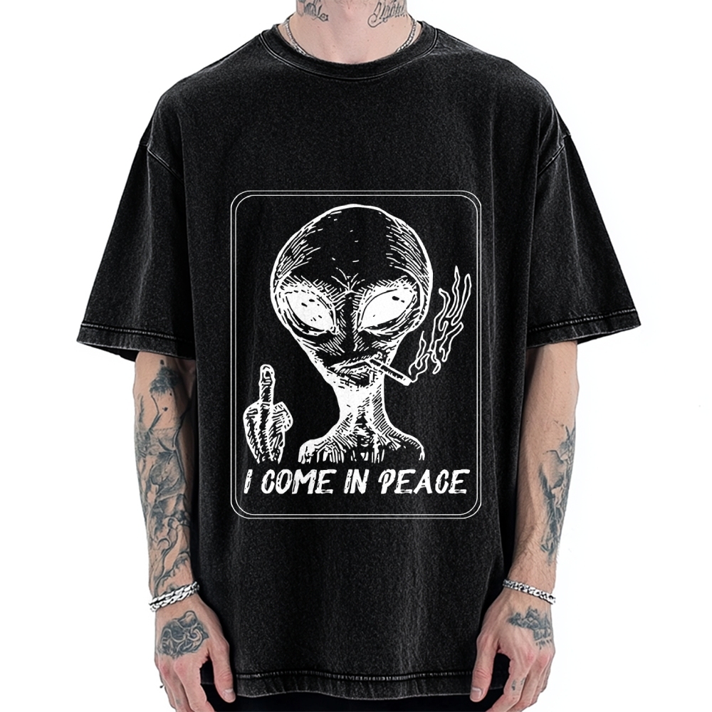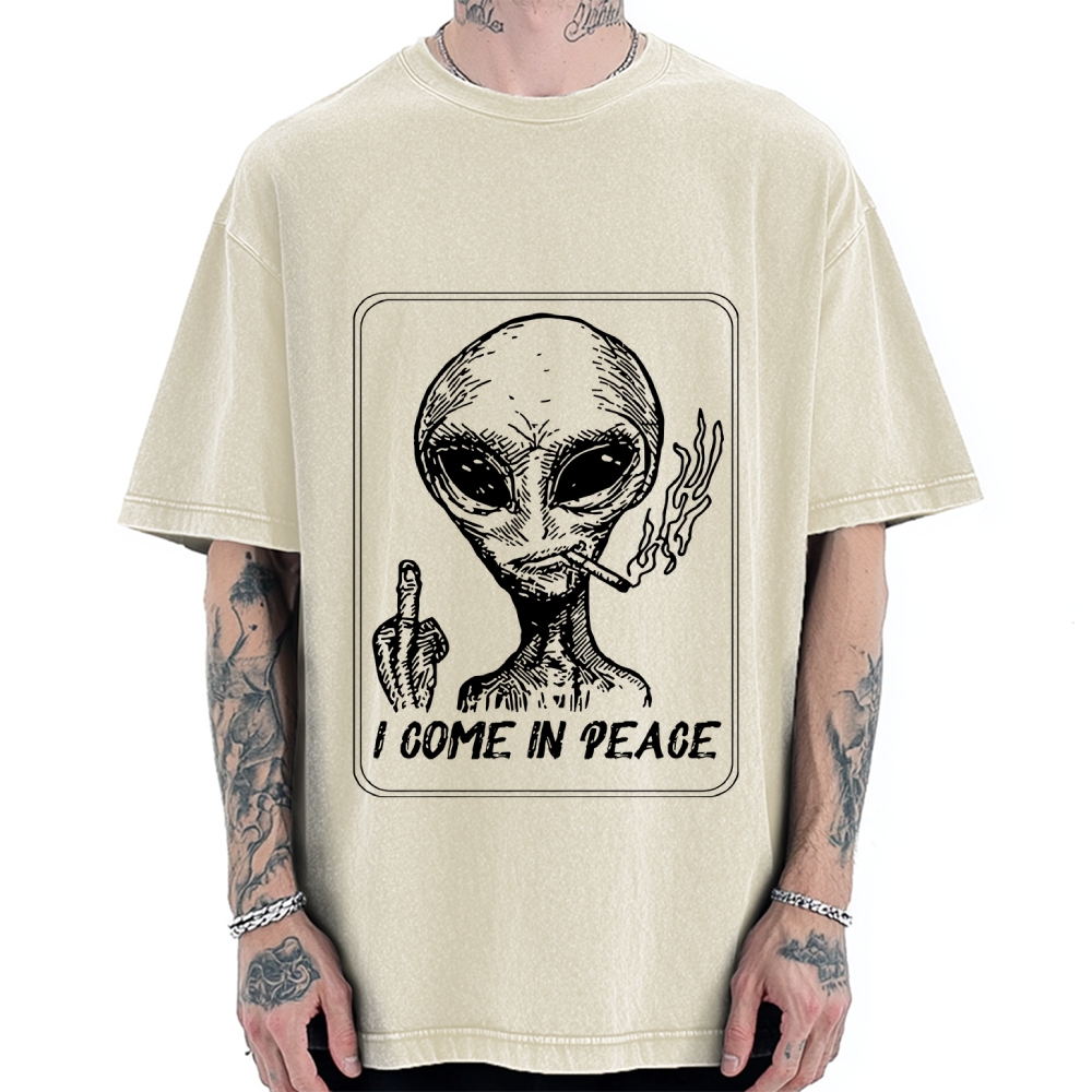 Tokyo-Assassin I Come in Peace Alien Vintage Washed T-shirt