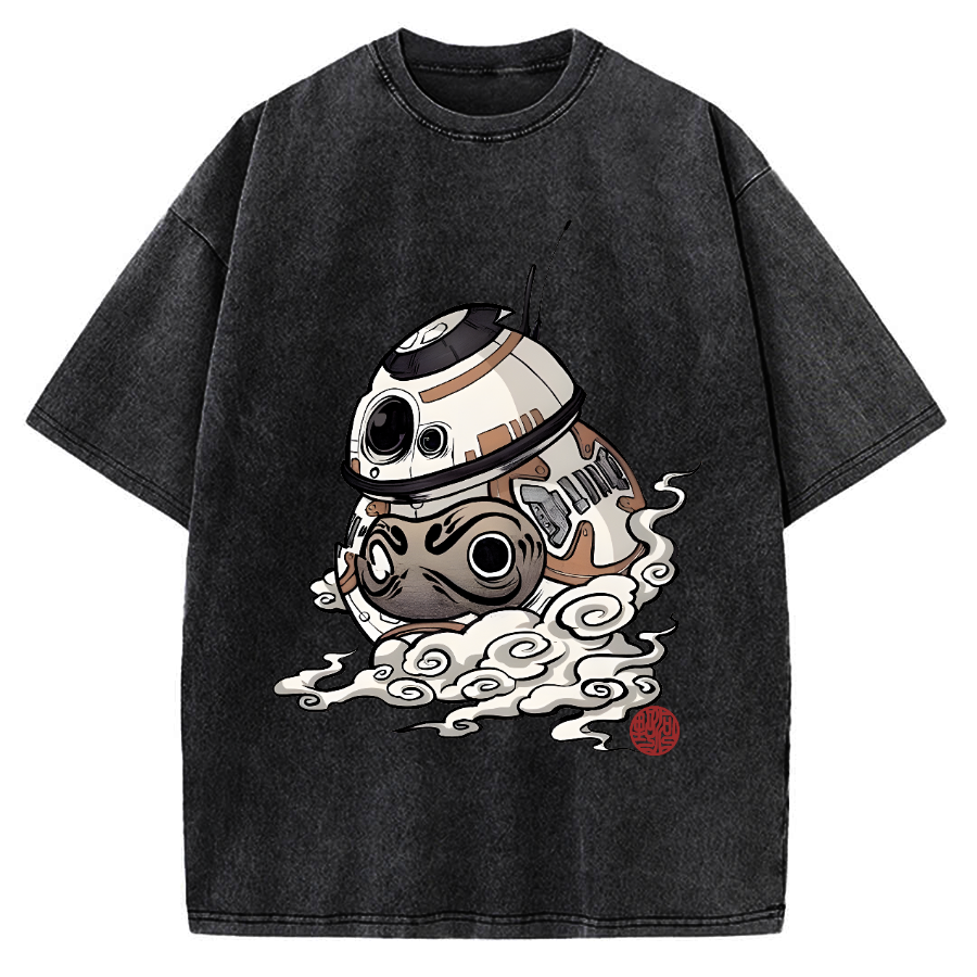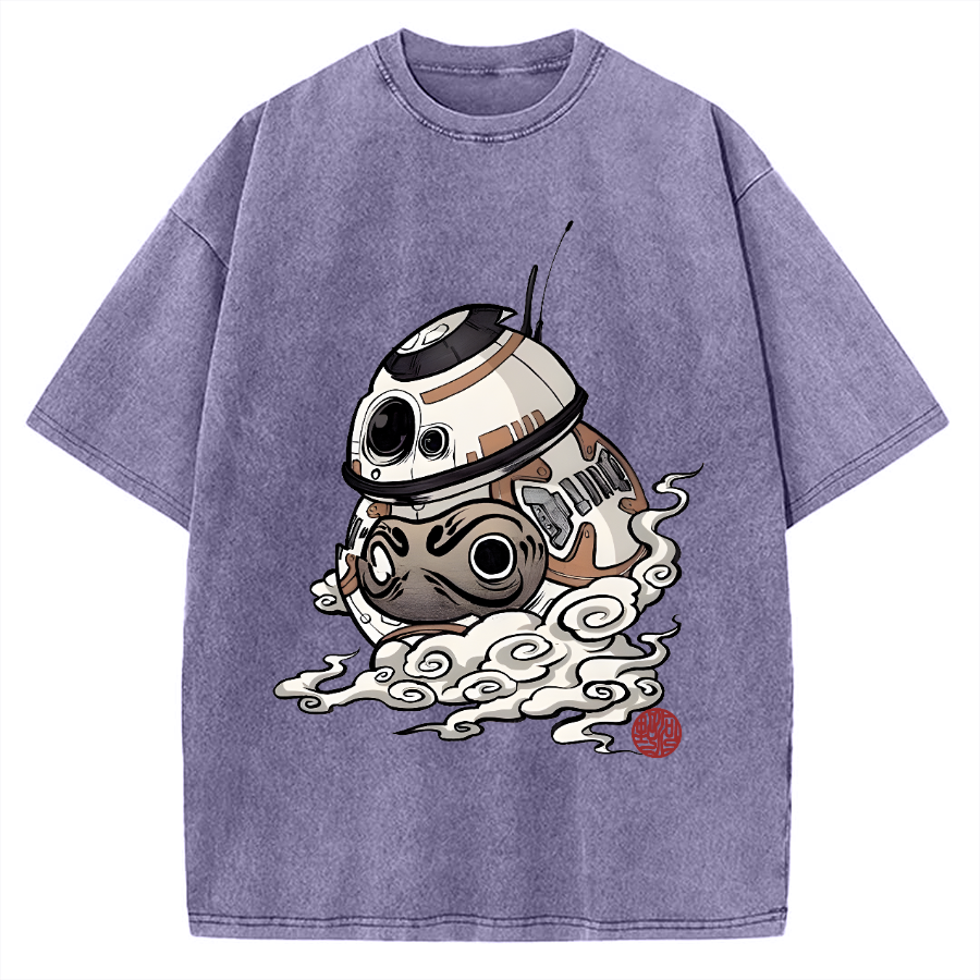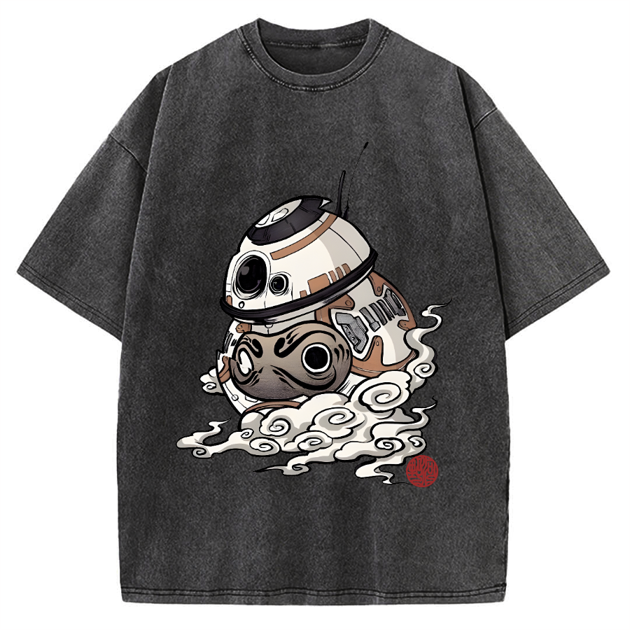 Tokyo-Assassin Interstellar Robot Daruma Cyberpunk Style Vintage Washed T-shirt