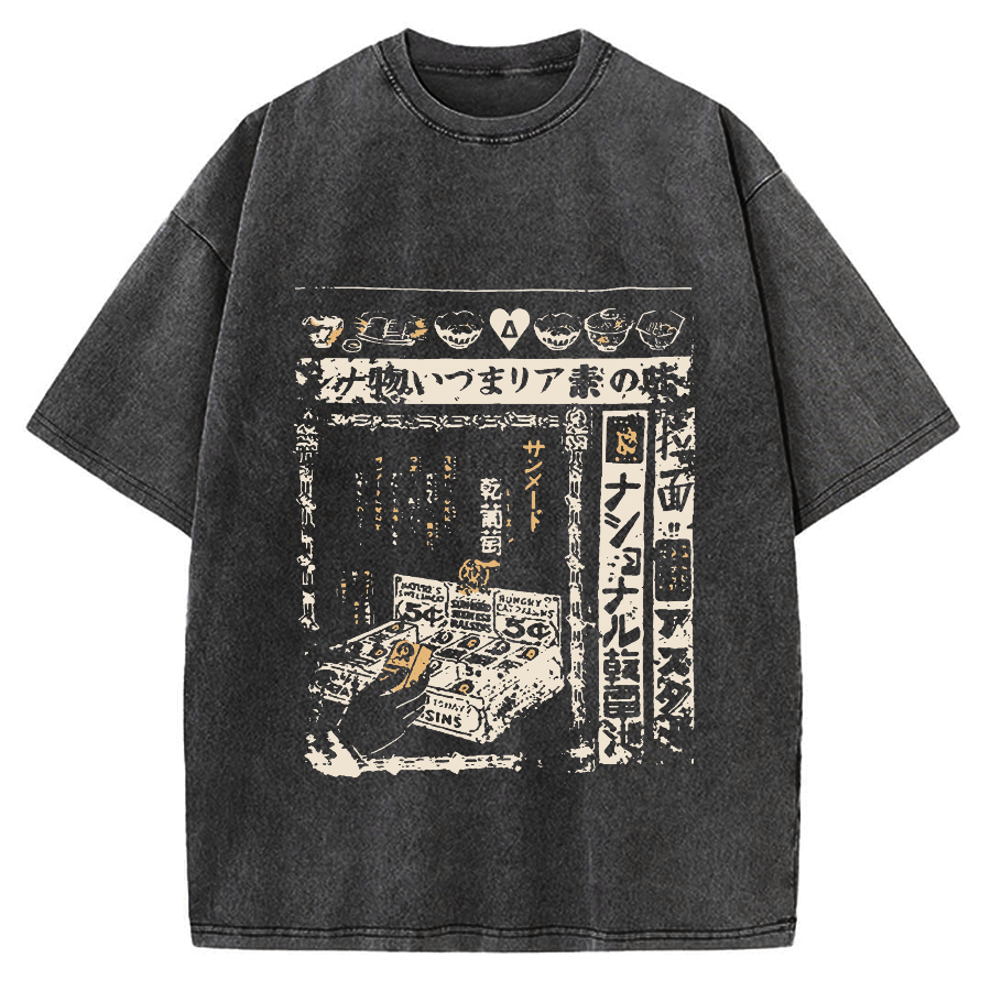 Tokyo-Assassin Japanese Retro Poster Food Ramen Vintage Washed T-shirt