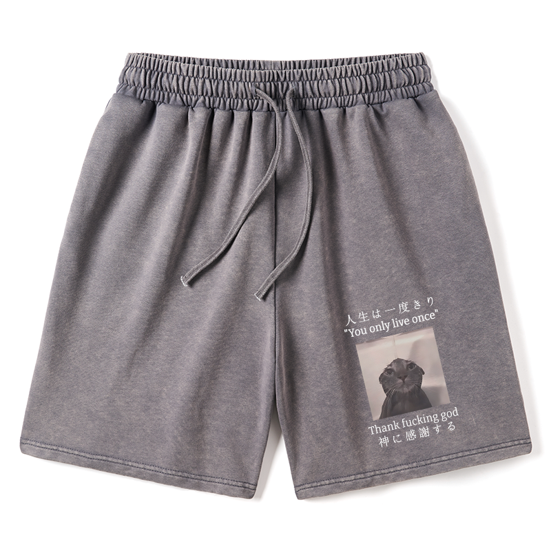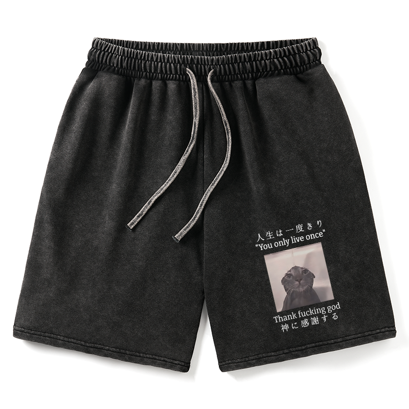 Tokyo-Assassin Funny Melancholy Cat Washed Shorts