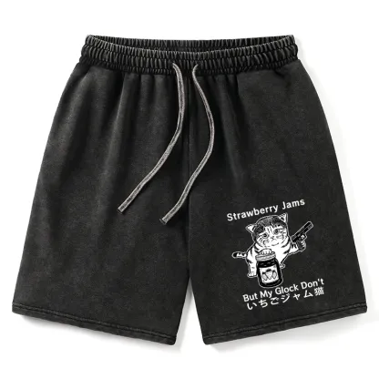 Tokyo-Assassin Strawberry Jam Cat Washed Shorts