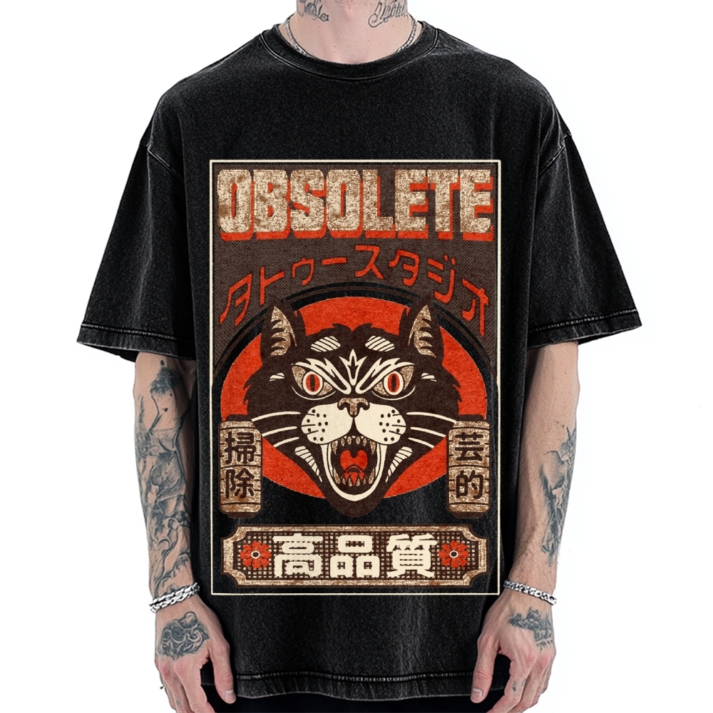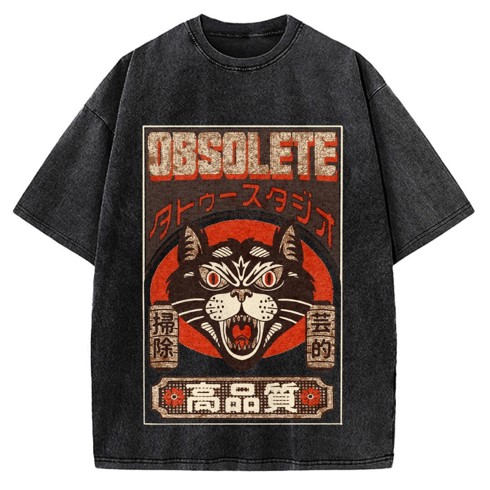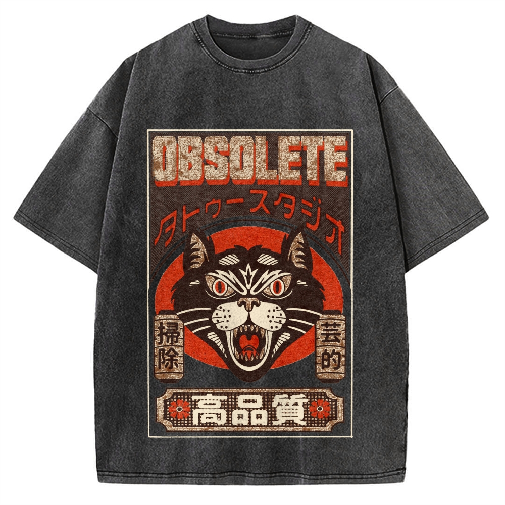 Tokyo-Assassin Retro Japanese Cat Vintage Washed T-shirt