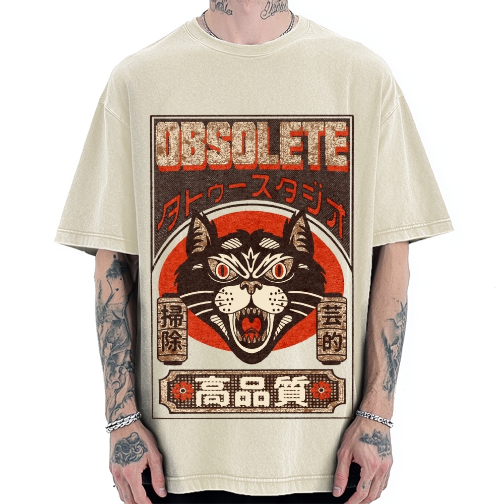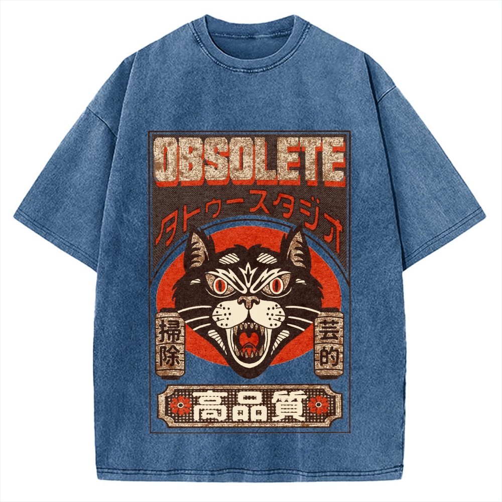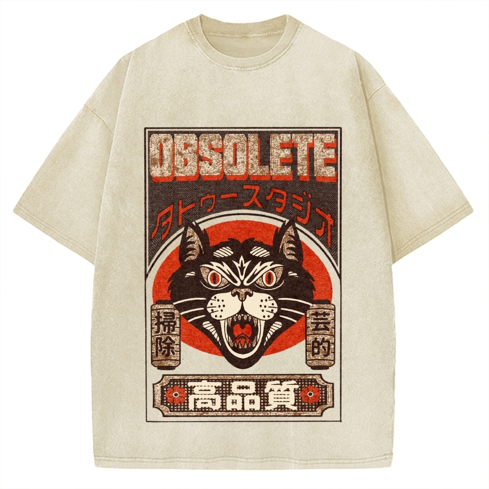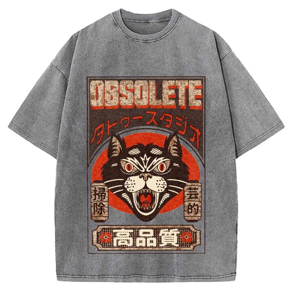 Tokyo-Assassin Retro Japanese Cat Vintage Washed T-shirt