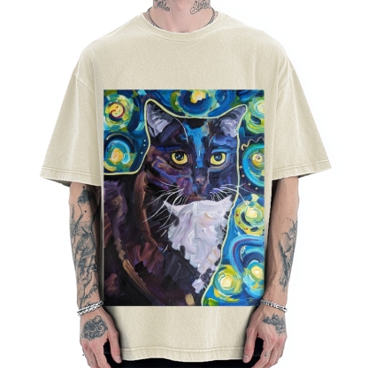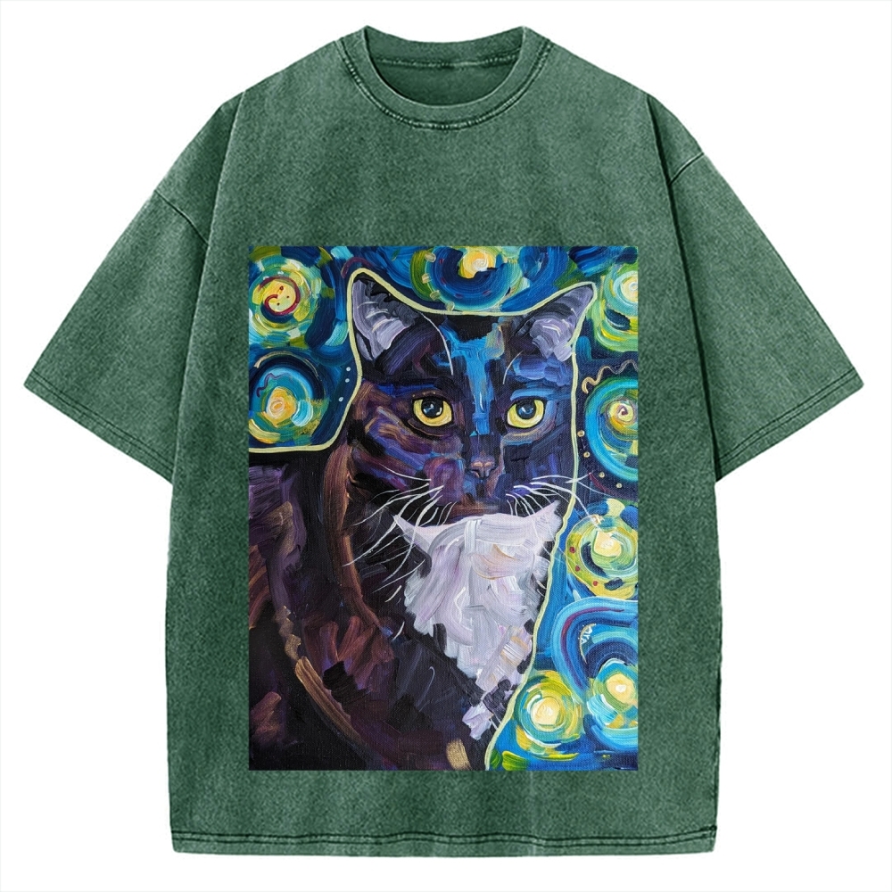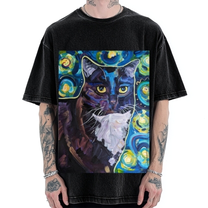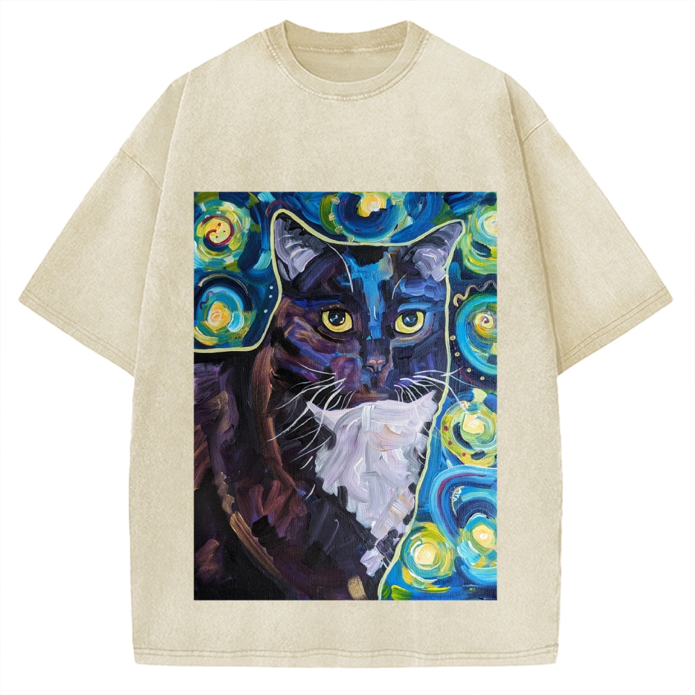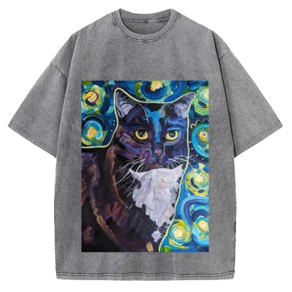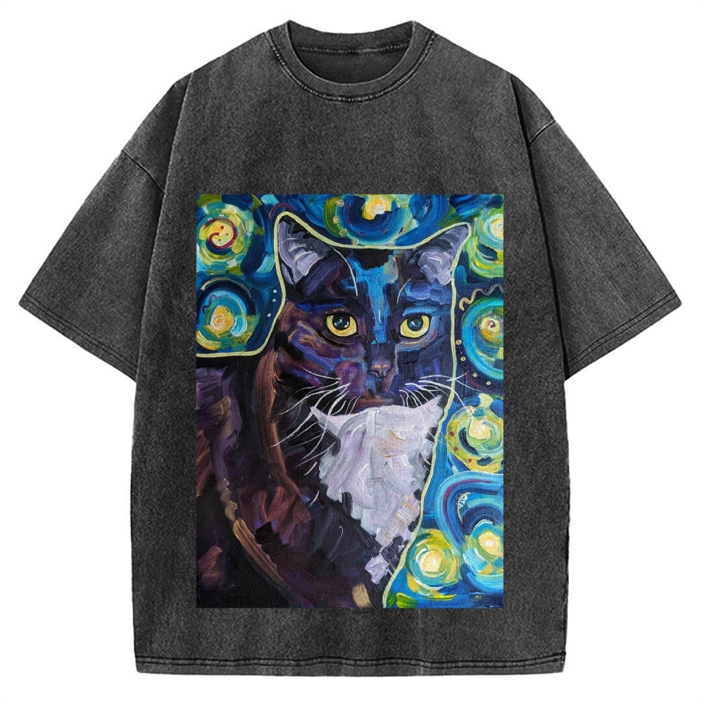 Tokyo-Assassin Abstract painting style Cat Vintage Washed T-shirt