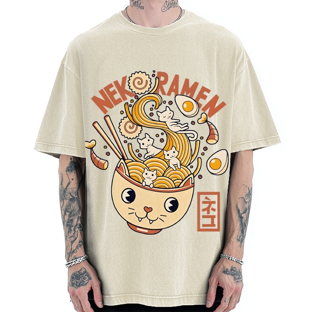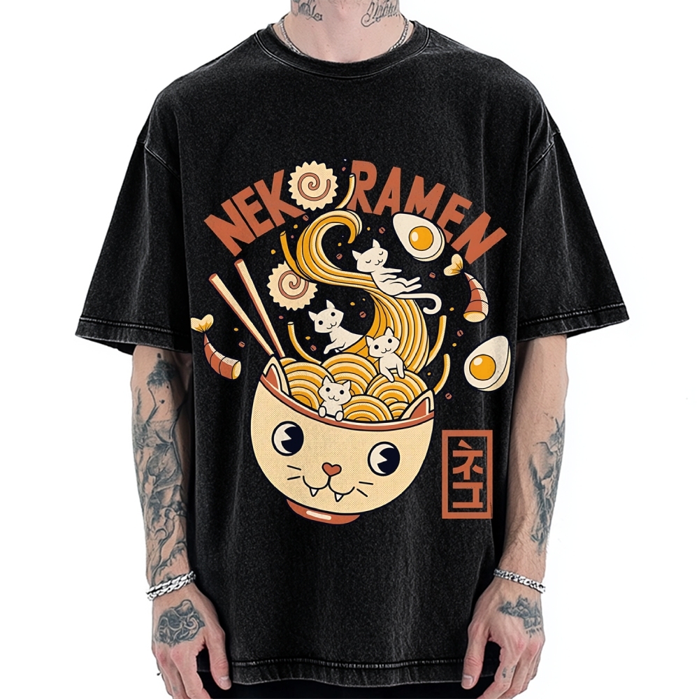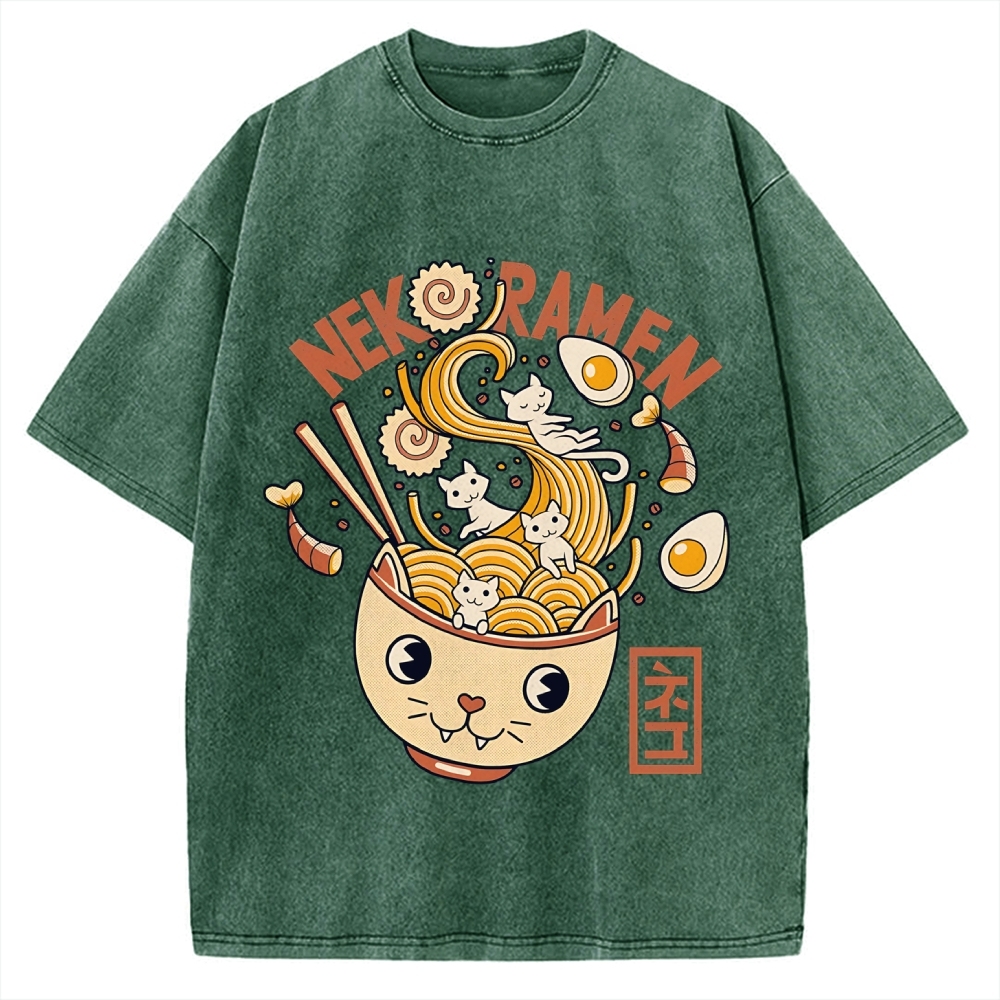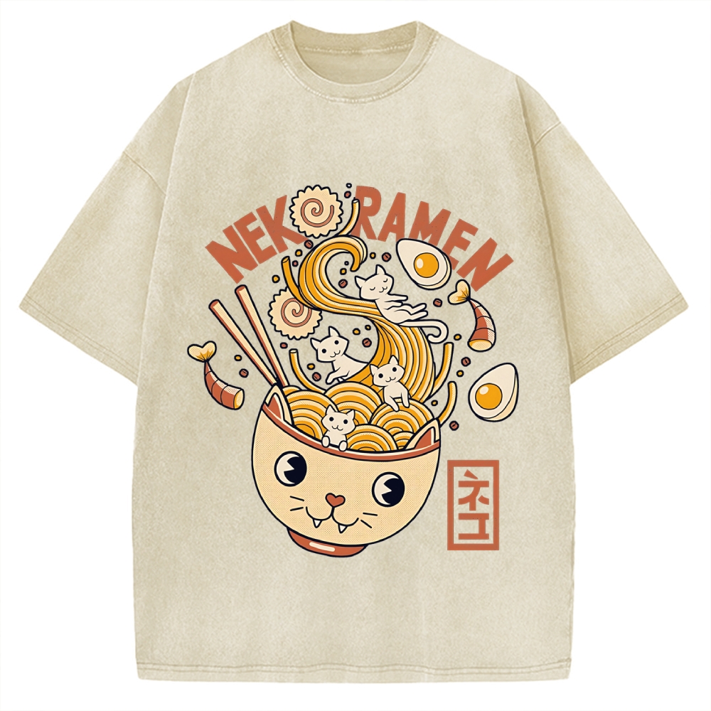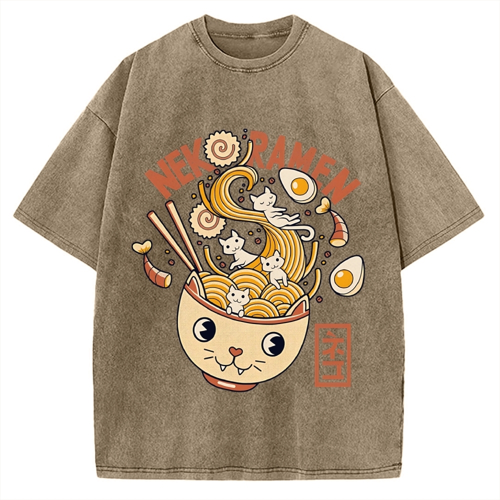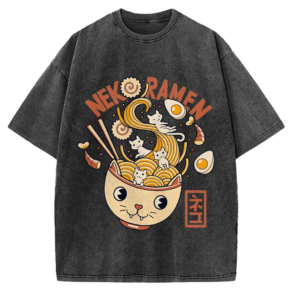 Tokyo-Assassin Cat Ramen Vintage Washed T-shirt