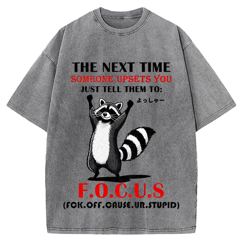 Tokyo-Assassin Funny raccoon the next time someone upsets you just tell them to f.o.c.u.s Vintage Washed T-shirt