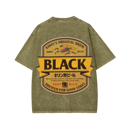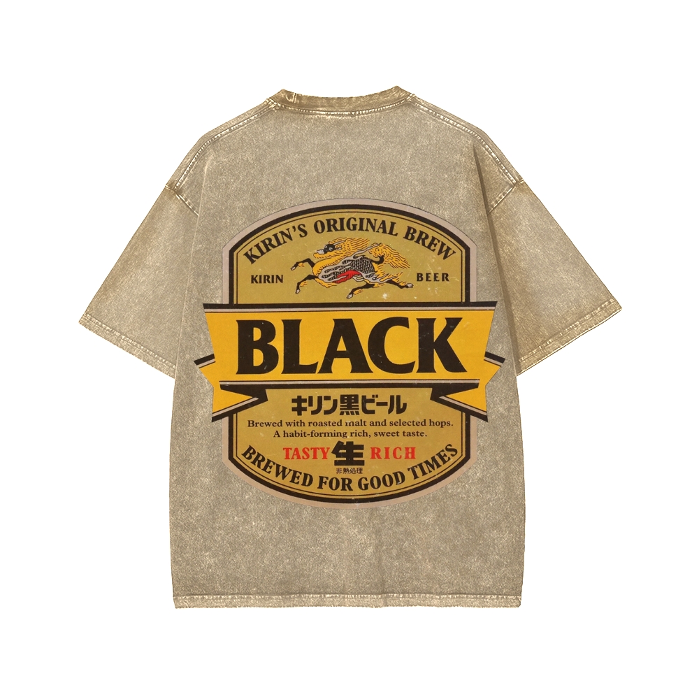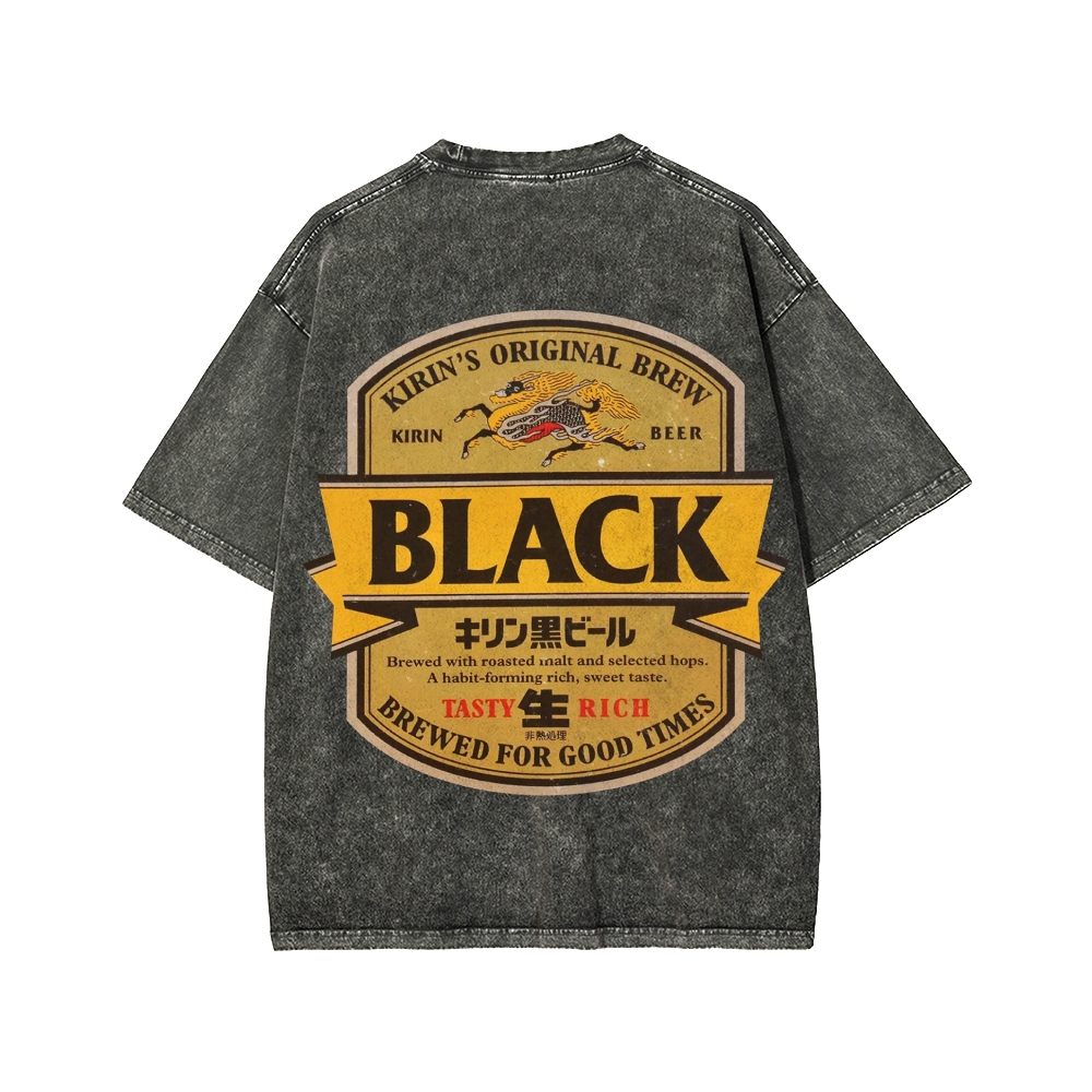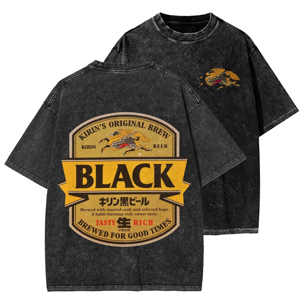 Tokyo-Assassin Kirin Black Beer Front And Back Printing Washed T-shirt