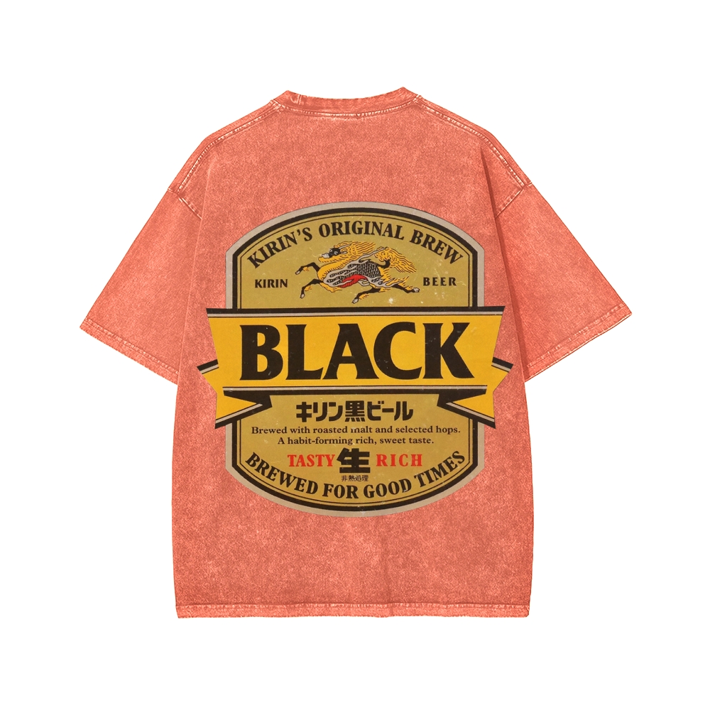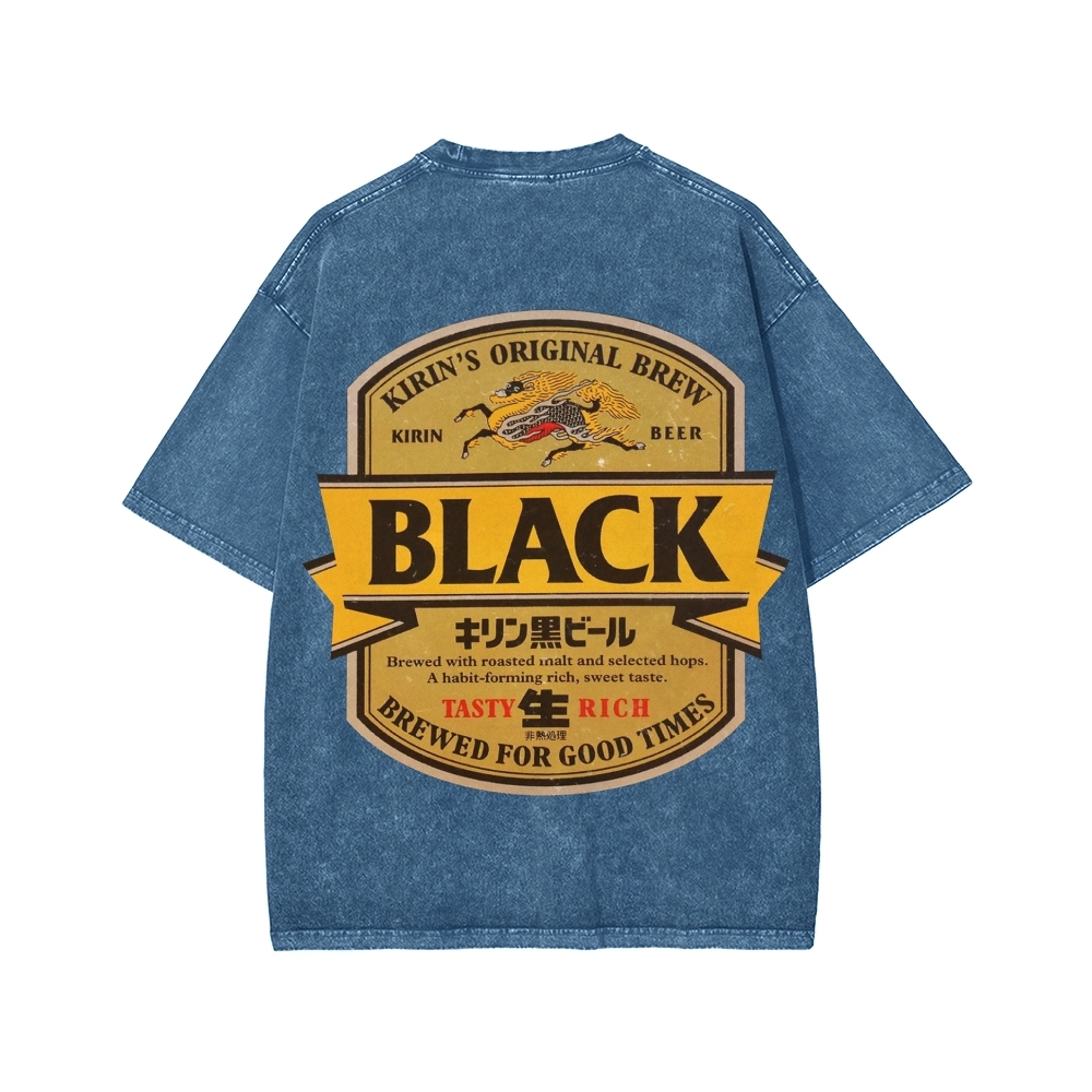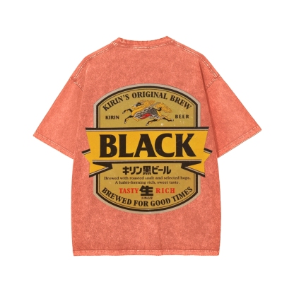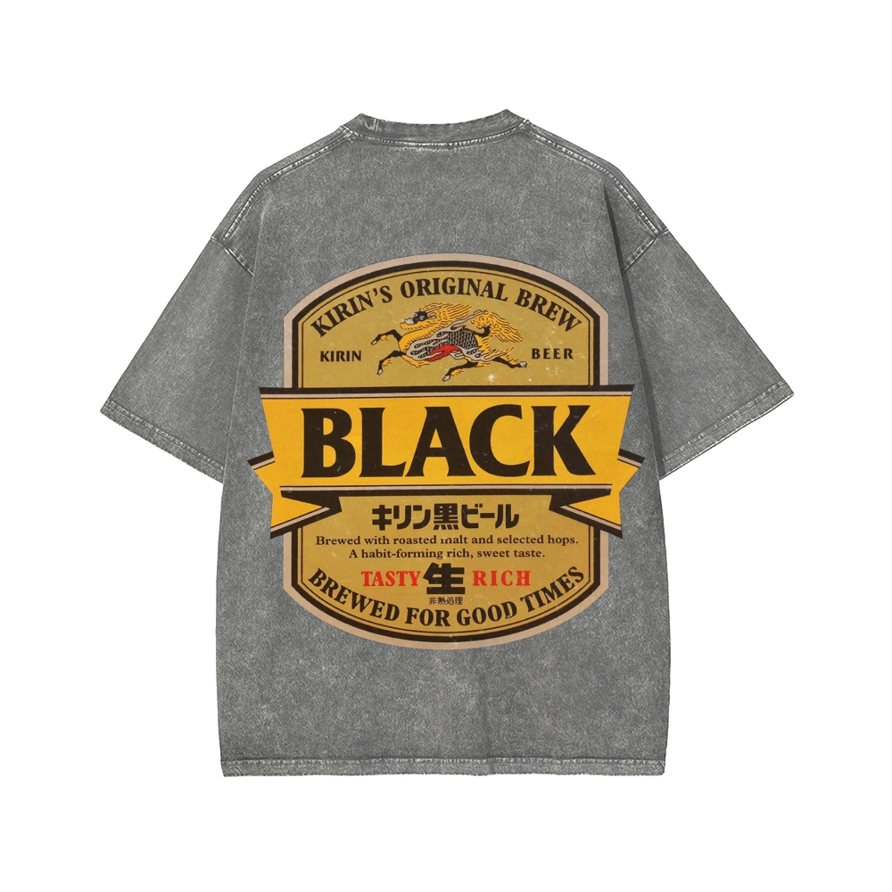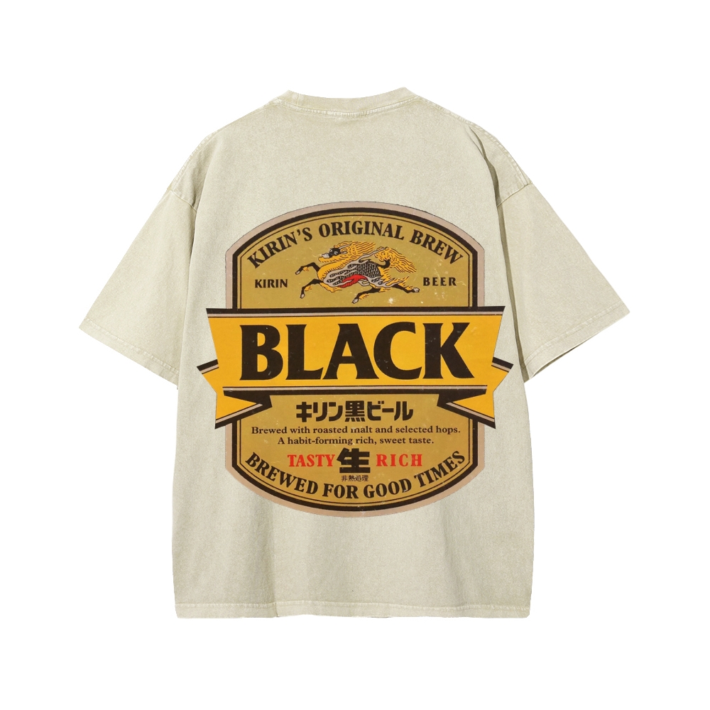 Tokyo-Assassin Kirin Black Beer Front And Back Printing Washed T-shirt