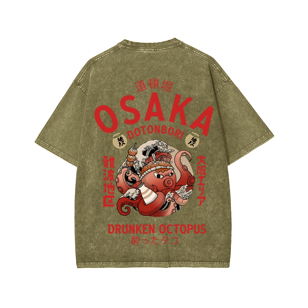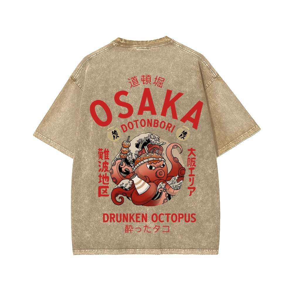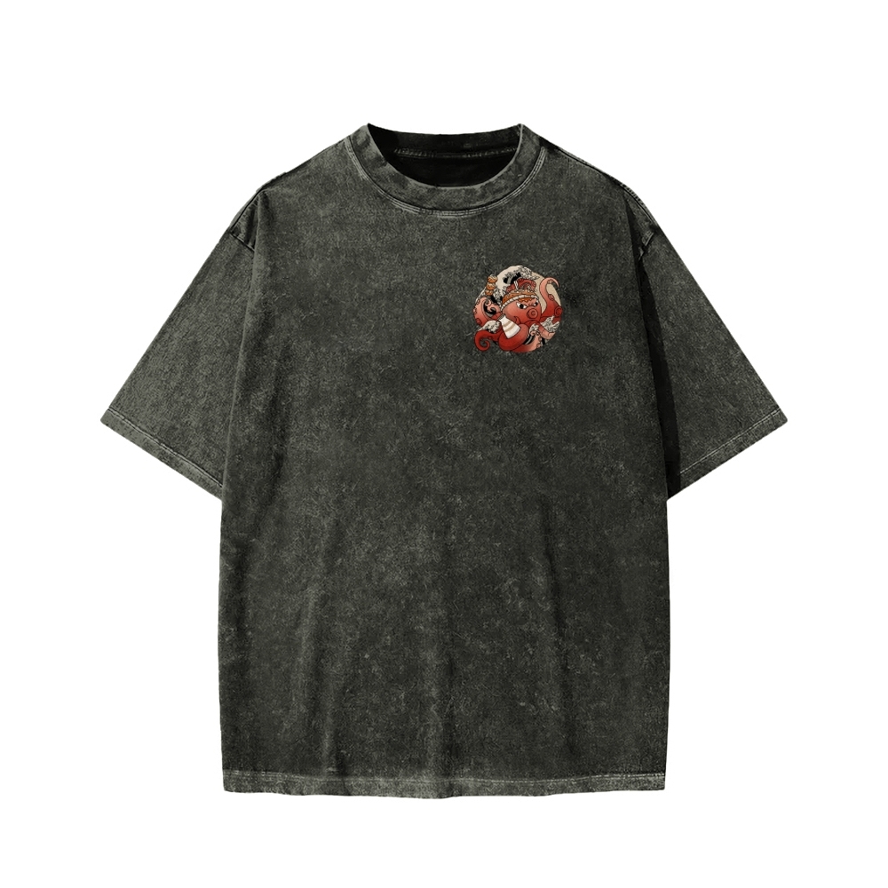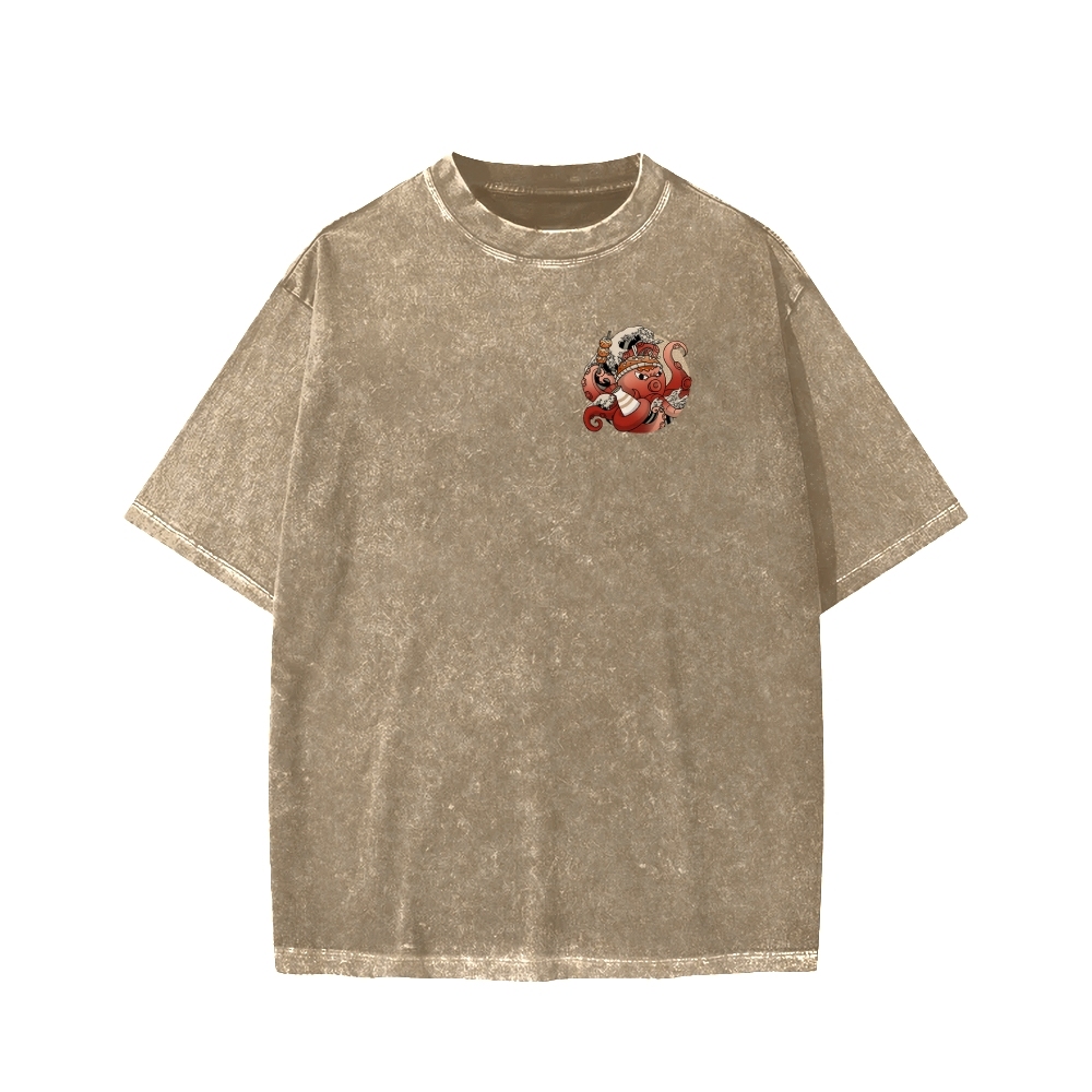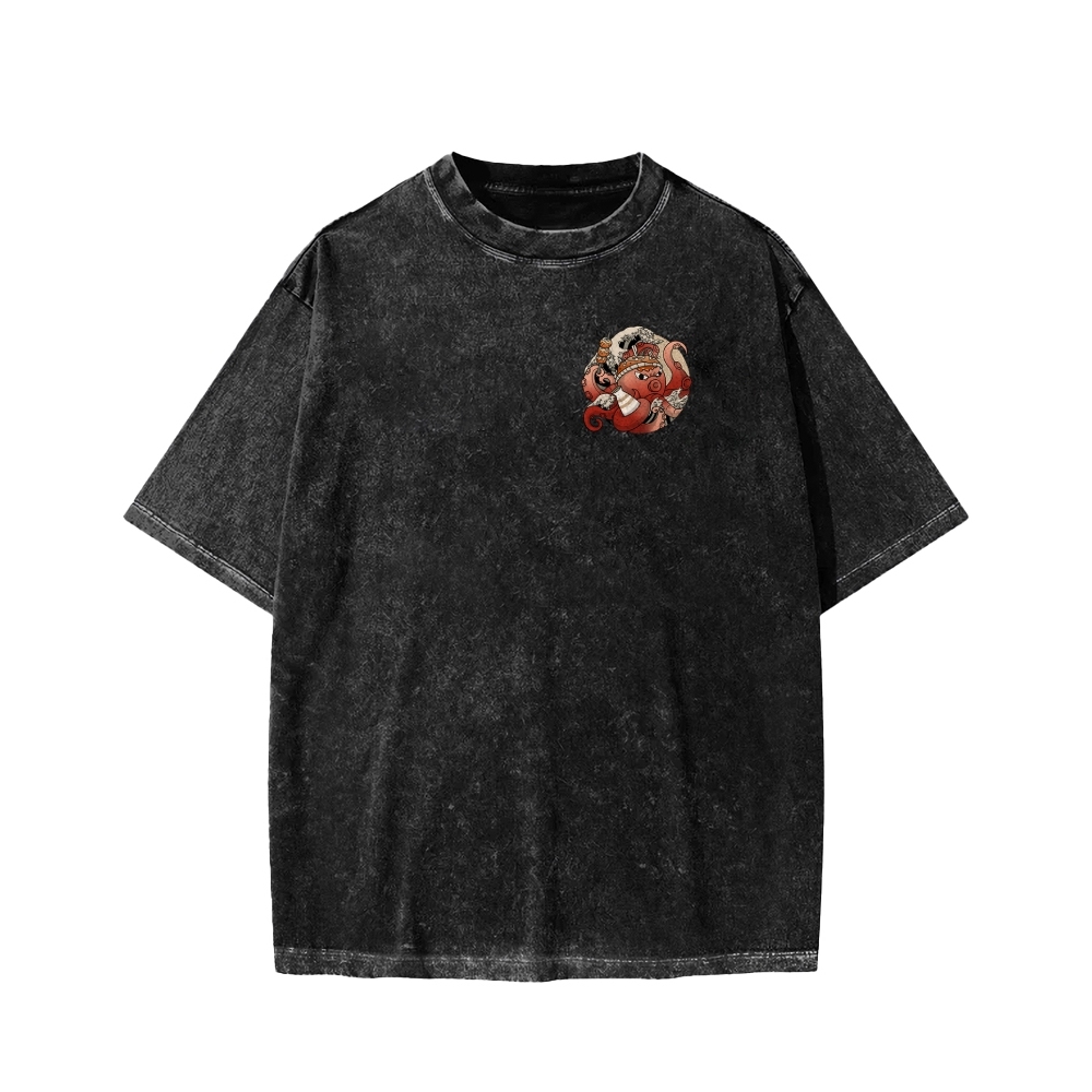 Tokyo-Assassin Osaka Drunken Octopus Front And Back Printing Washed T-shirt