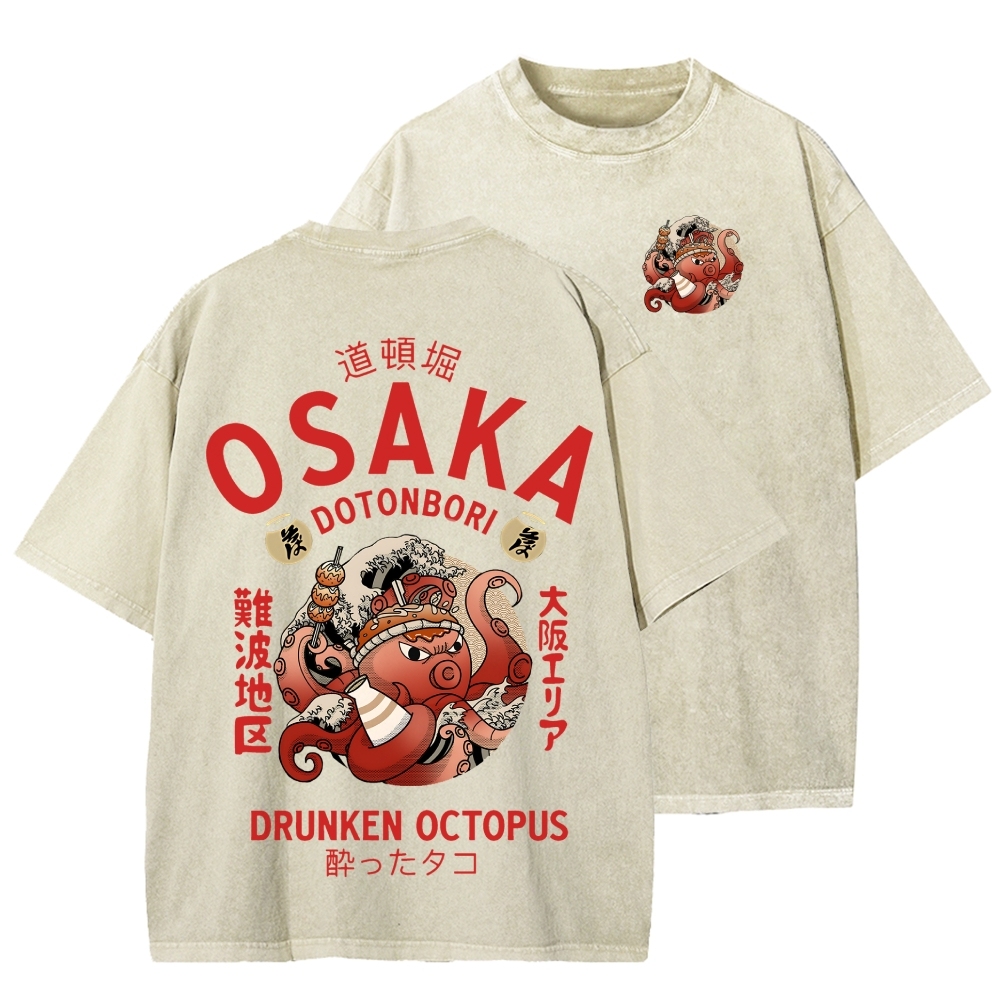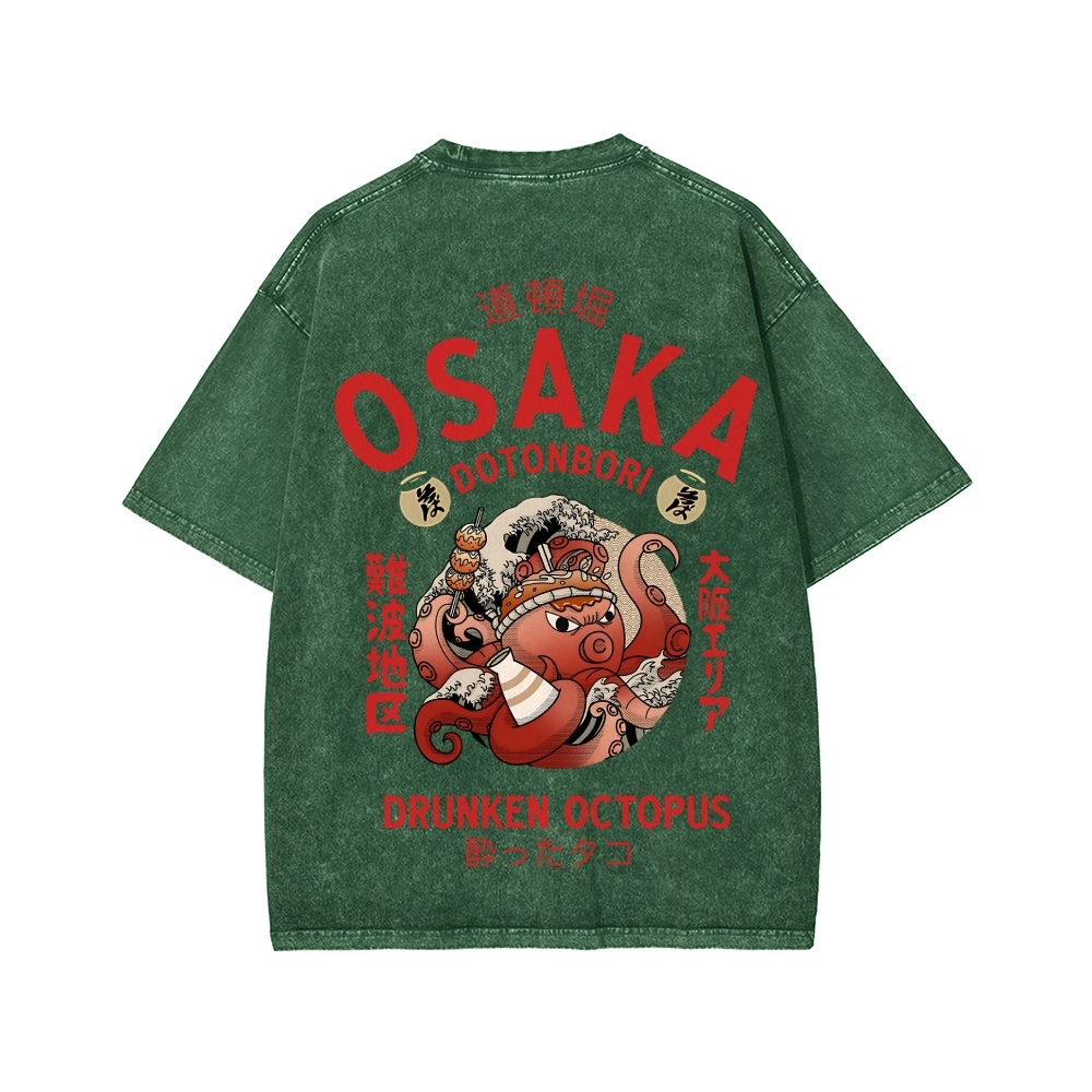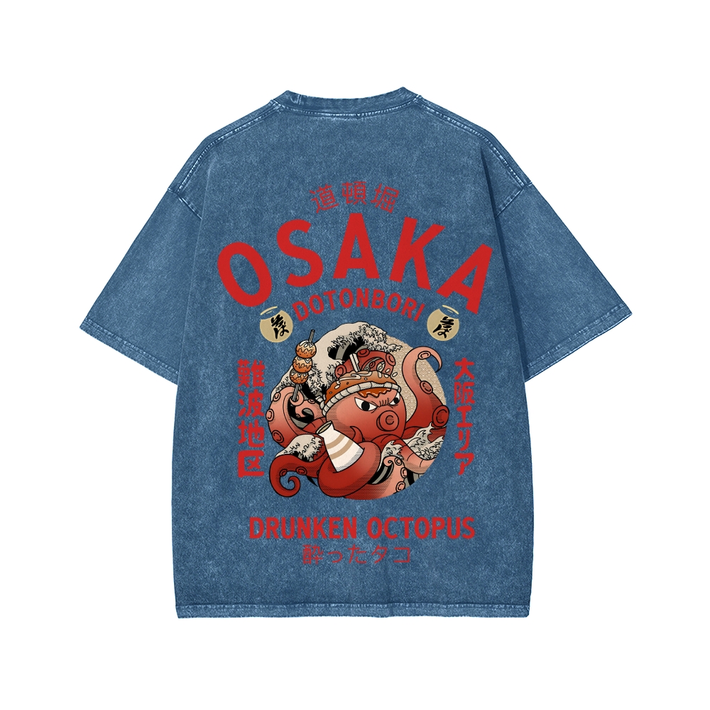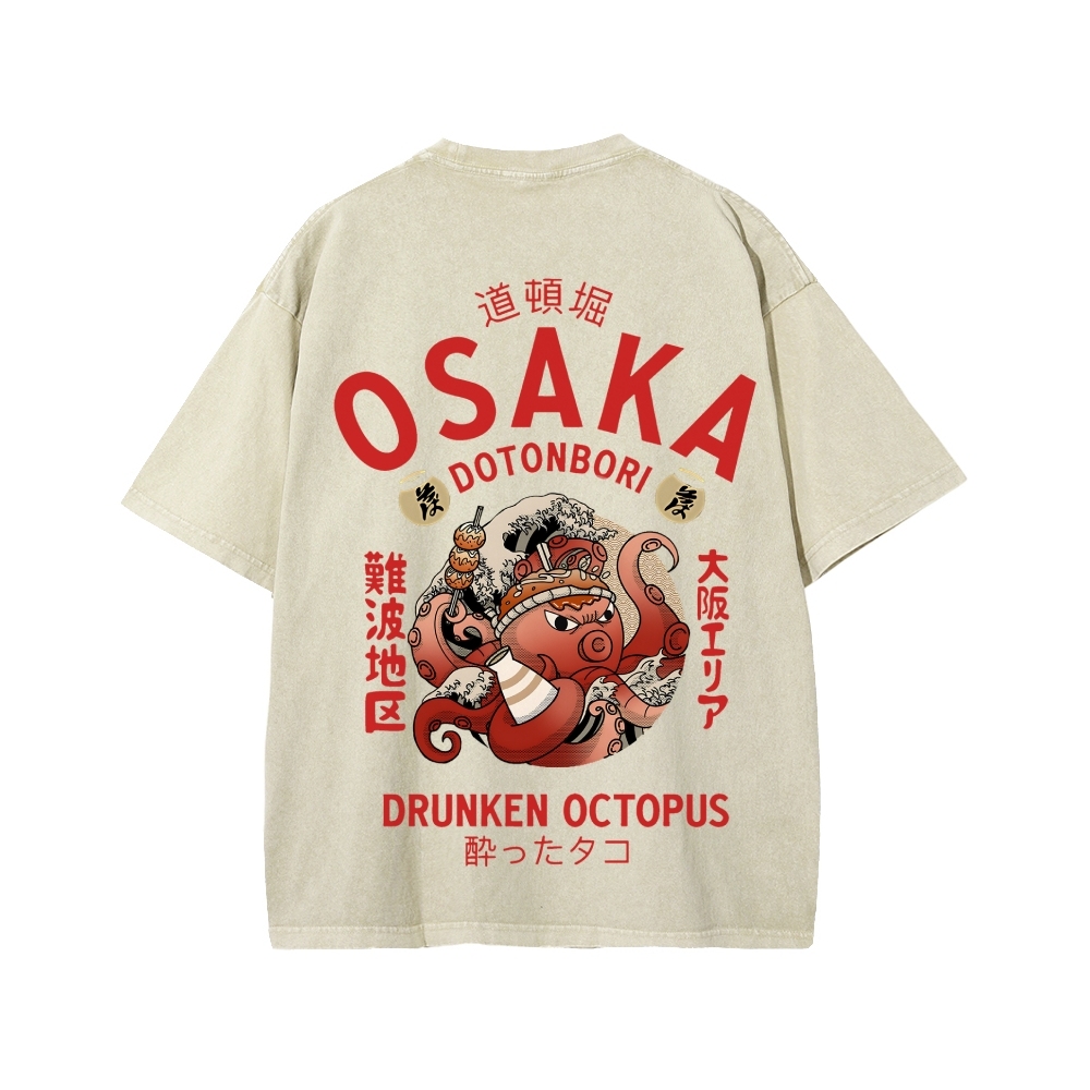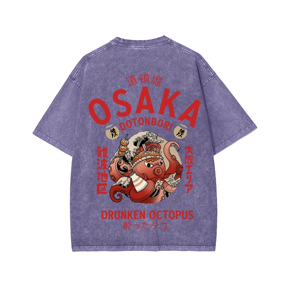 Tokyo-Assassin Osaka Drunken Octopus Front And Back Printing Washed T-shirt