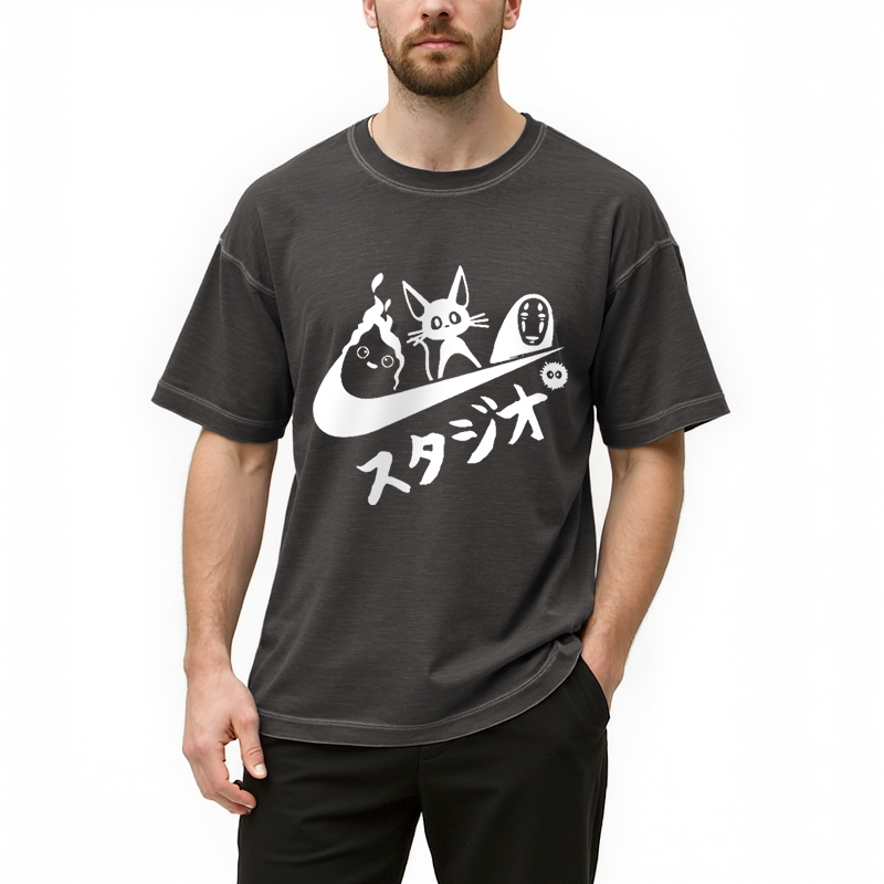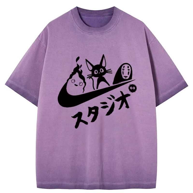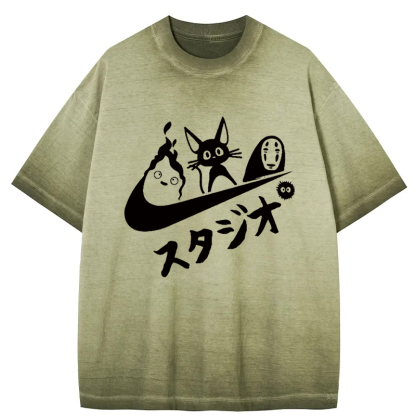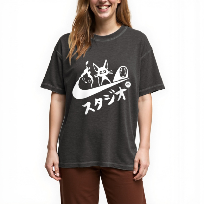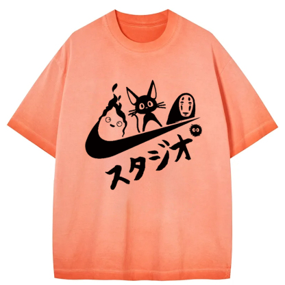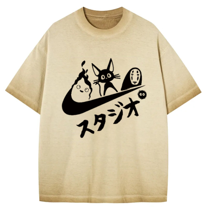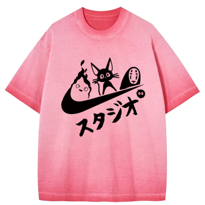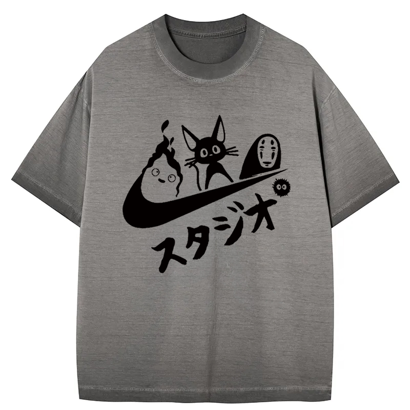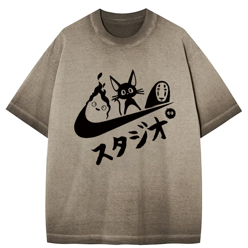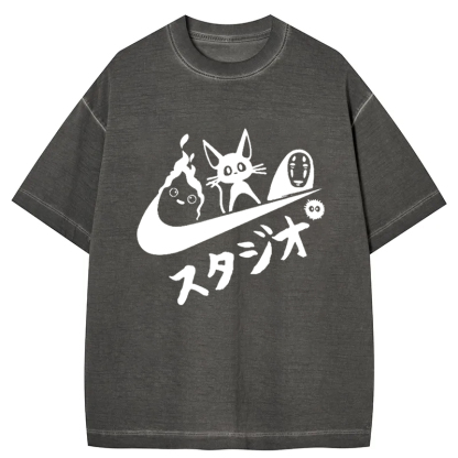 Tokyo-Assassin Black Cat Ghibli Vintage Gradient Washed T-Shirt