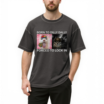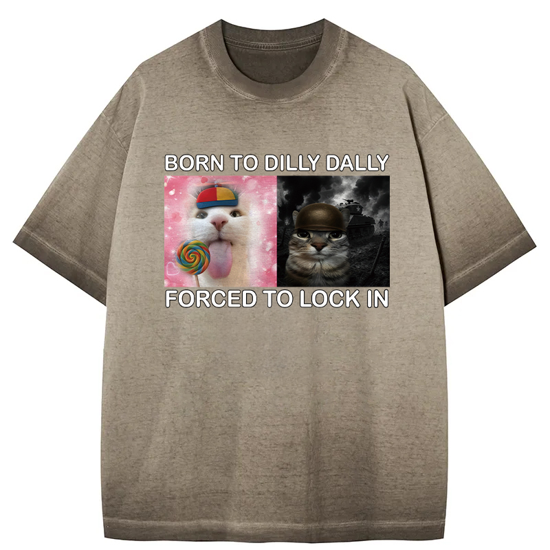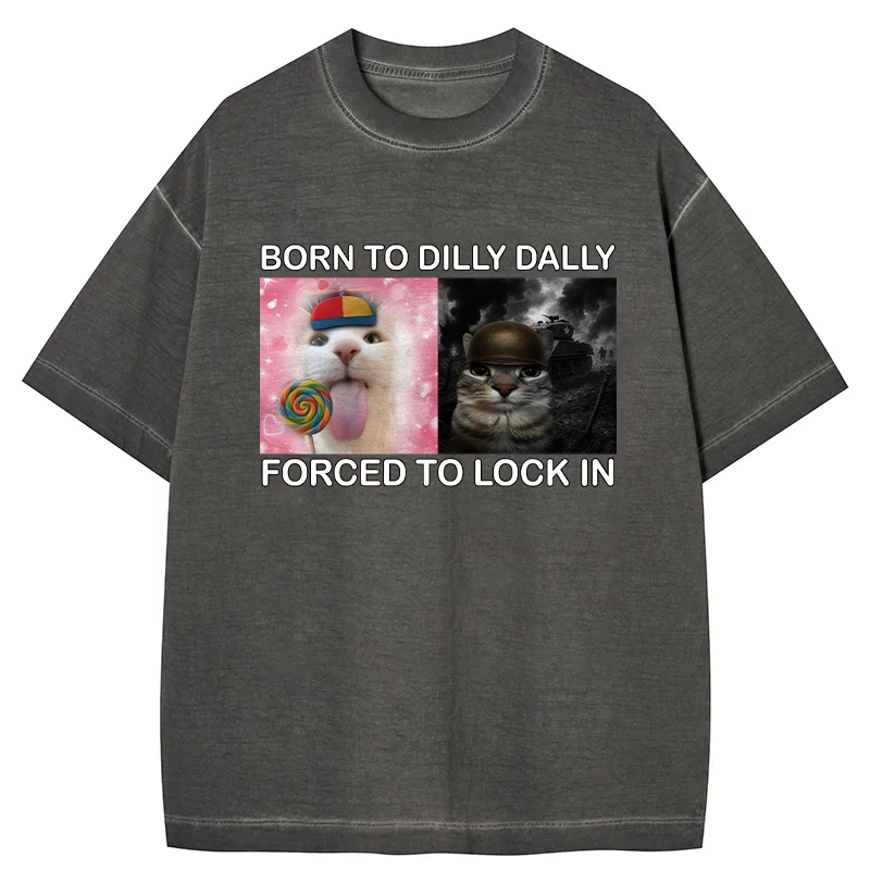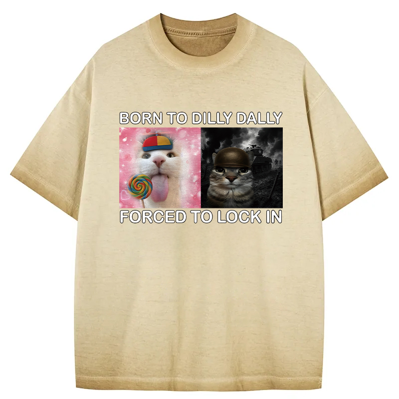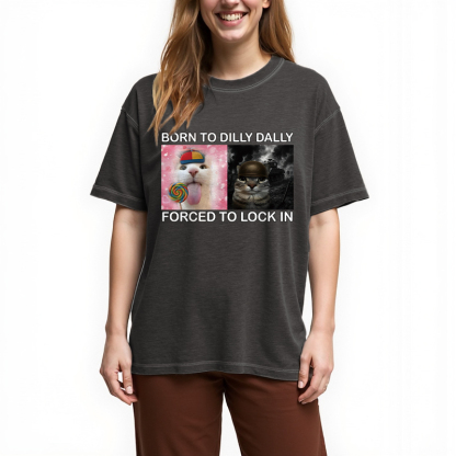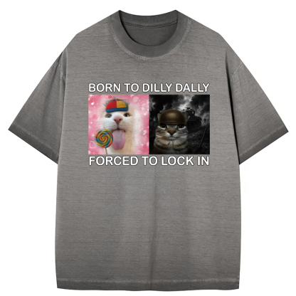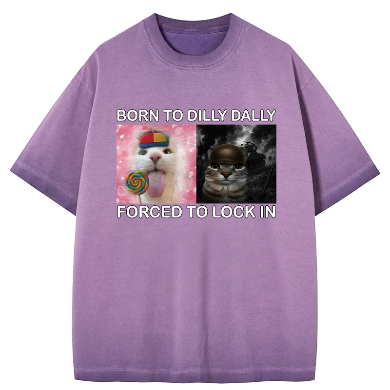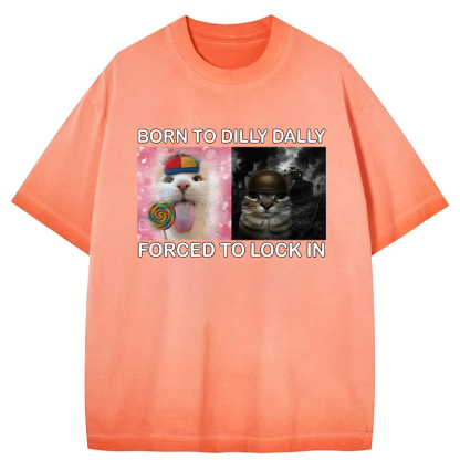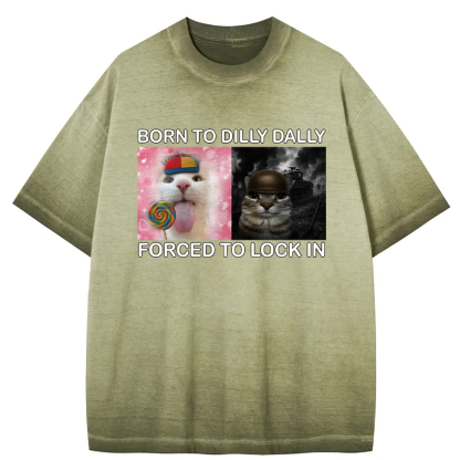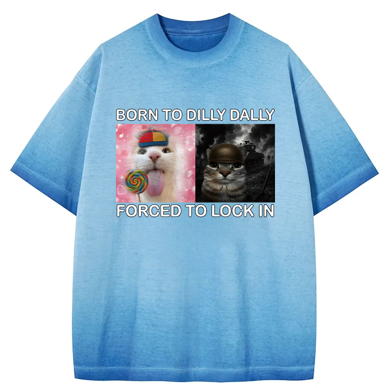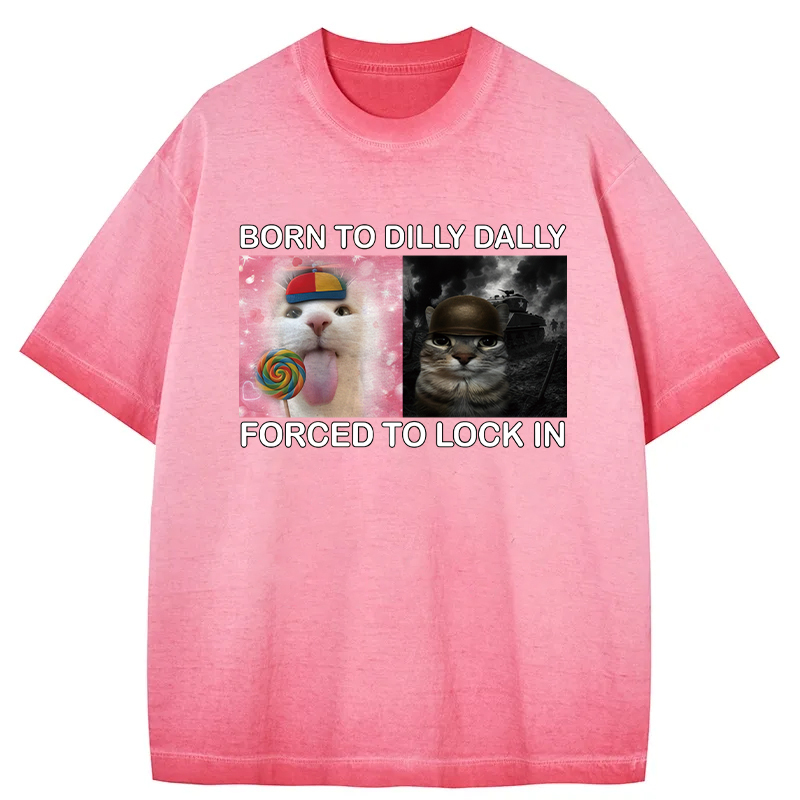 Tokyo-Assassin Born to Dilly Dally Funny Cat Meme Gradient Washed T-Shirt