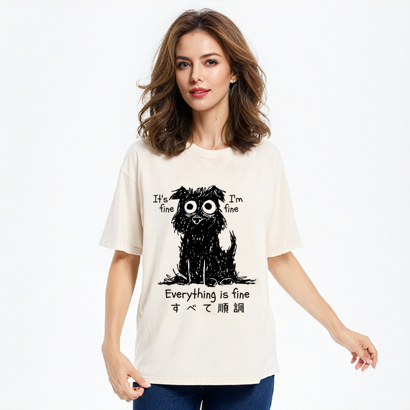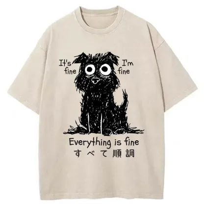 Tokyo-Assassin Everything Is Fine Dog Washed T-Shirt